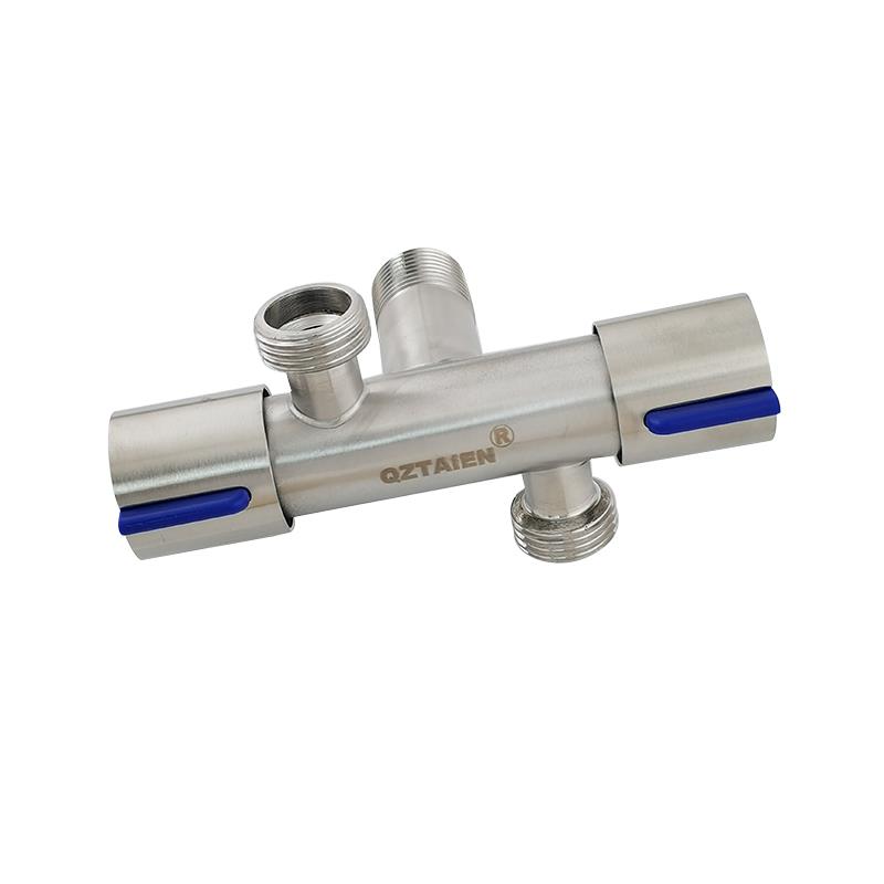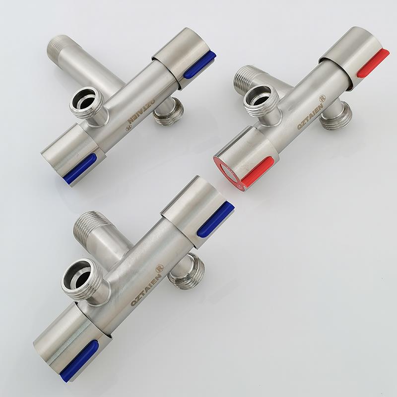 不锈钢一进二出三角阀双开 龙头分水器双切热马桶三通卫 关加长款