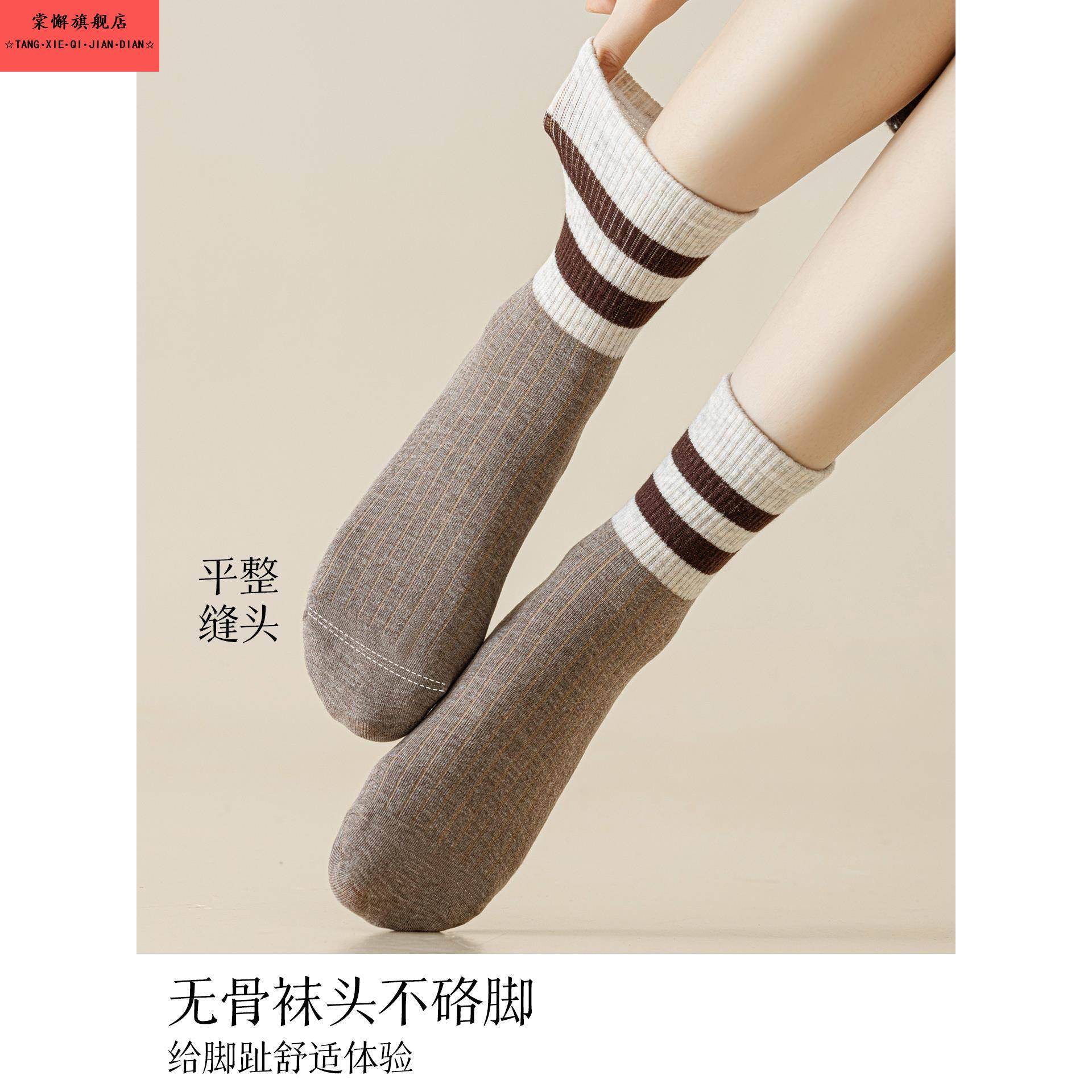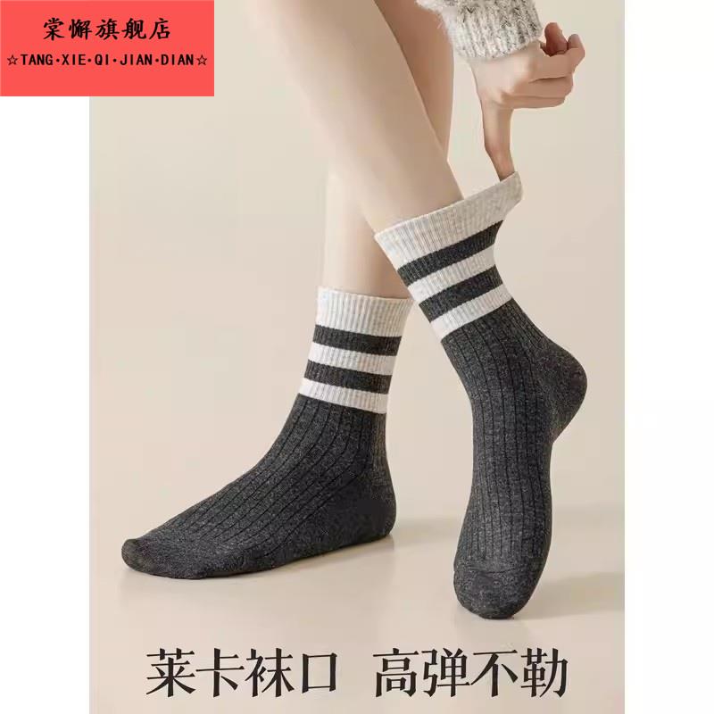 乐福鞋 黑色袜子女中筒纯棉秋冬季 堆堆长袜搭配小皮鞋 爆款 2025新款