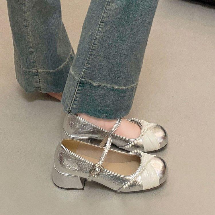 芭蕾风气质粗跟配裙子皮单鞋 新款 女2025秋季 绝美珍珠玛丽珍高跟鞋