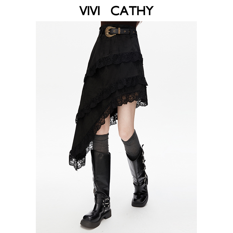 新款 朗姿黑色鱼尾设计感半身裙长裙半裙2025年秋季 免定金