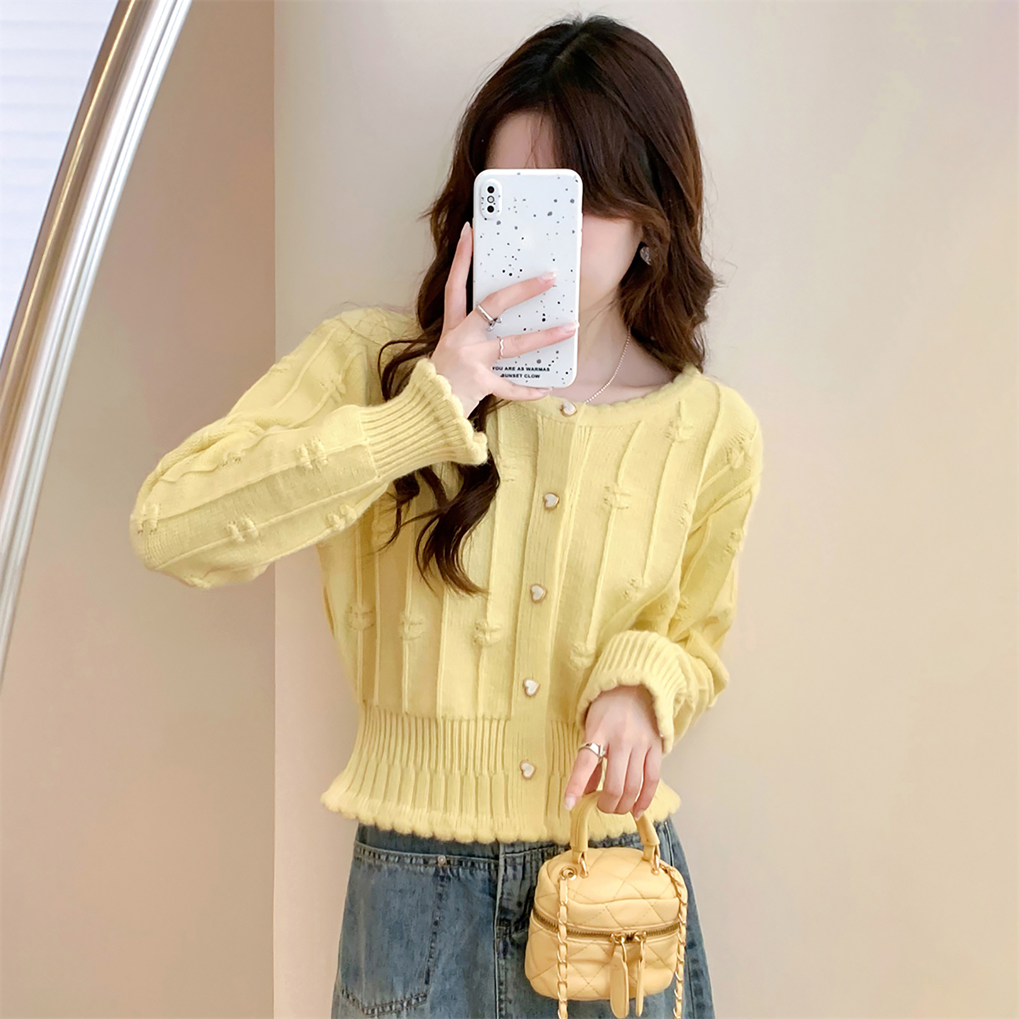 唐狮秋冬毛衣女减龄温柔立体肌理针织开衫 外套高级感气质上衣tu