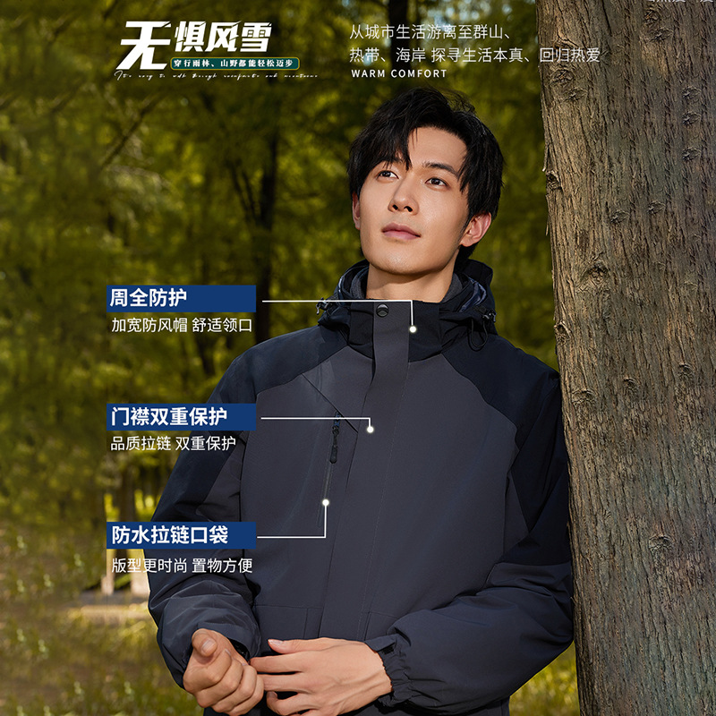 林更新同款 拓路者登山服抓绒内胆定制三合一外套男 朱雀冲锋衣