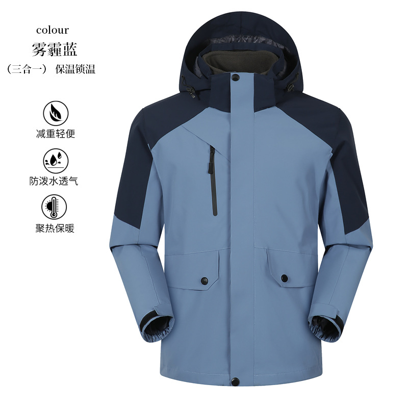 秋冬季 三合一 加绒外套冲锋衣定制印字logo工作服定做棉衣棉服工装