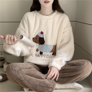 家居服春秋新款 加厚法兰绒加绒套装 珊瑚绒睡衣女秋冬季 2025年冬款