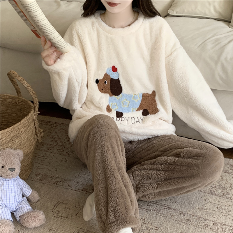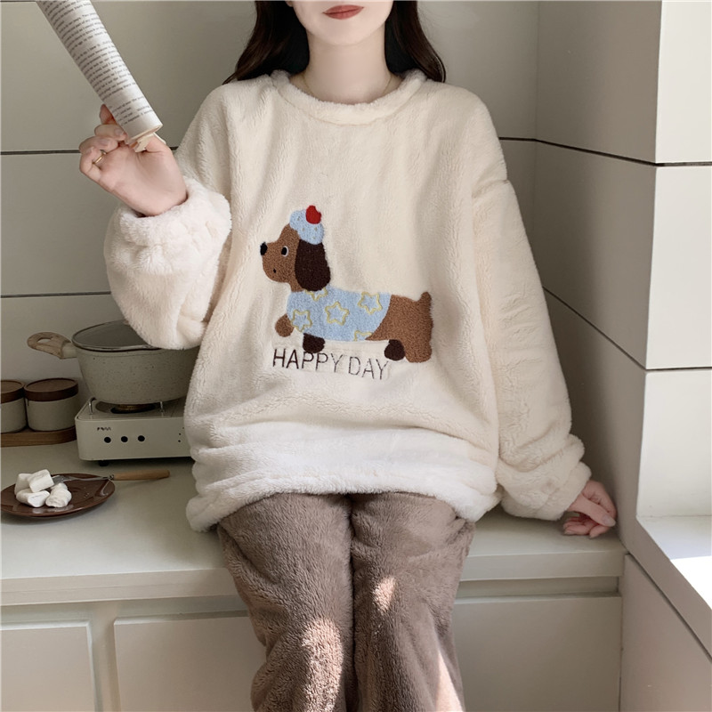 维密宅度假系列奶舒绒睡衣轻柔抗静电保暖家居服套装 女可外穿