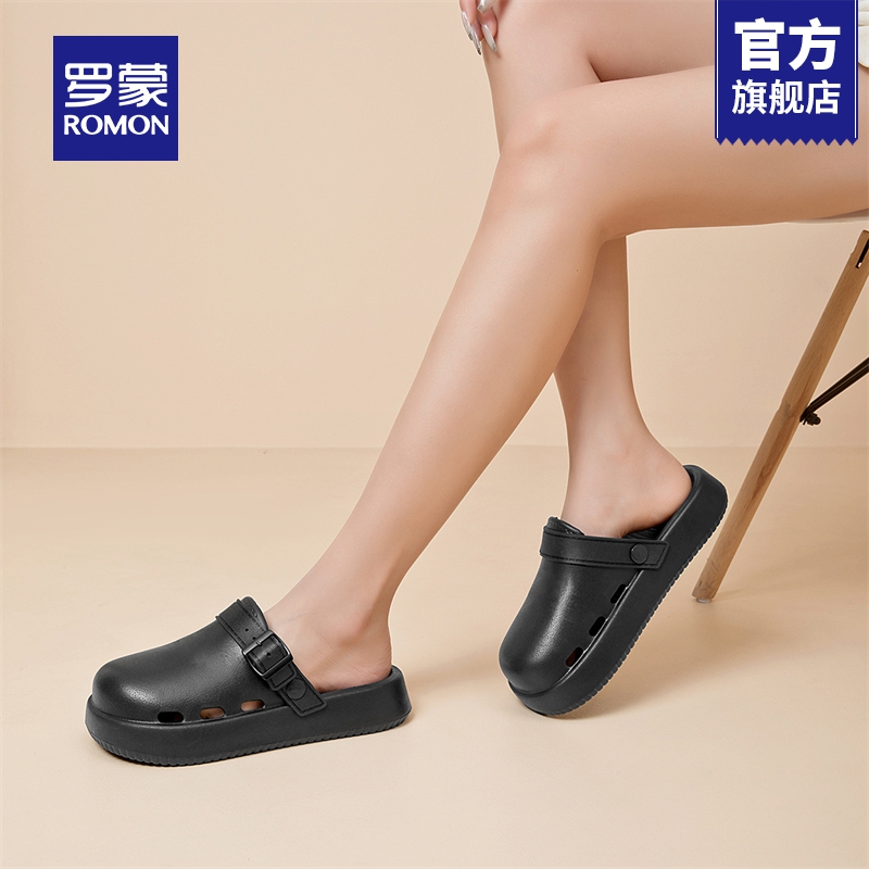 休闲舒适包头洞洞鞋 罗蒙女士休闲凉鞋 居家拖鞋 两穿2025新款 一鞋