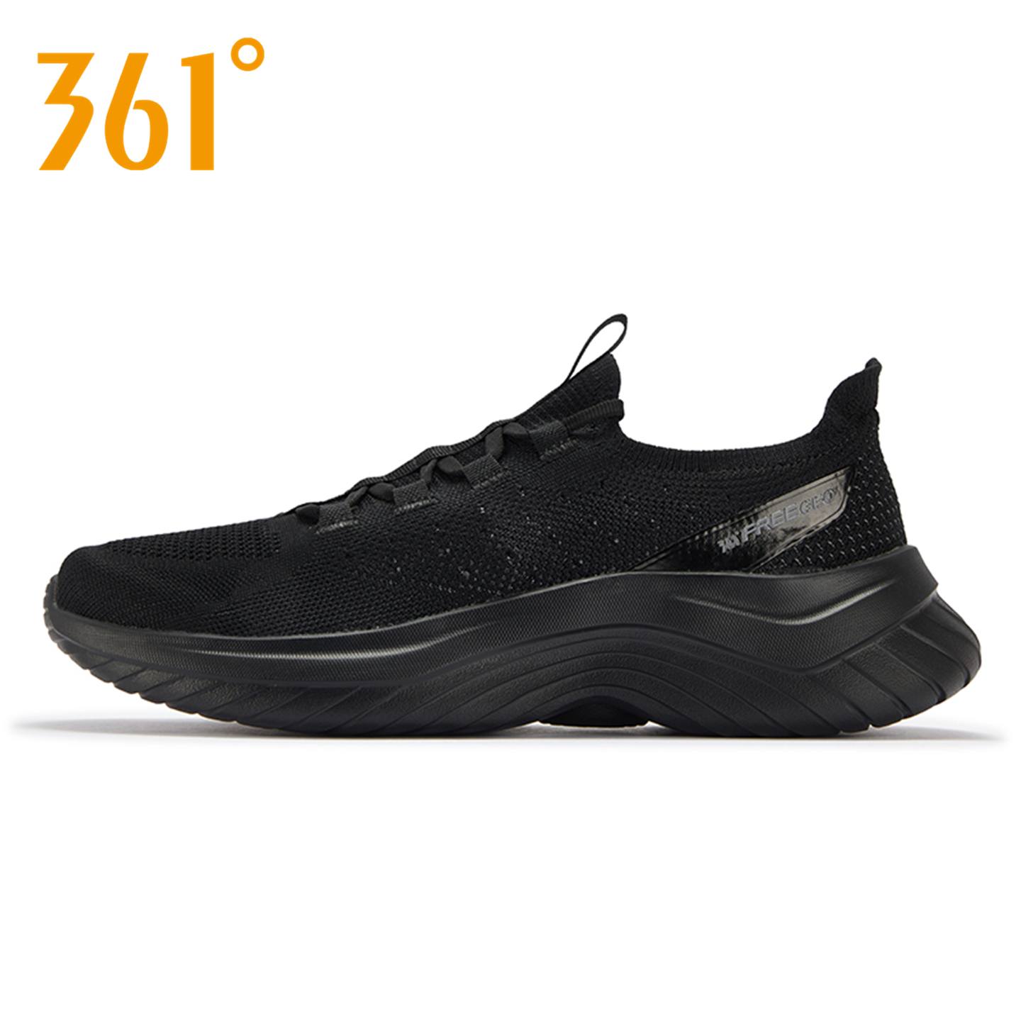 运动休闲鞋 361度男鞋 新款 全黑2025秋冬季 子 黑武士网孔透气跑步鞋