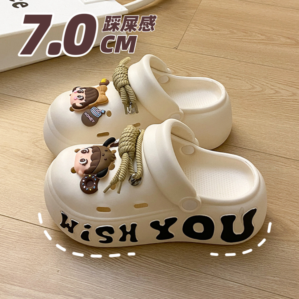 百搭包头拖鞋 卡通可爱女孩外穿防滑海边沙滩时尚 女夏季 厚底洞洞鞋