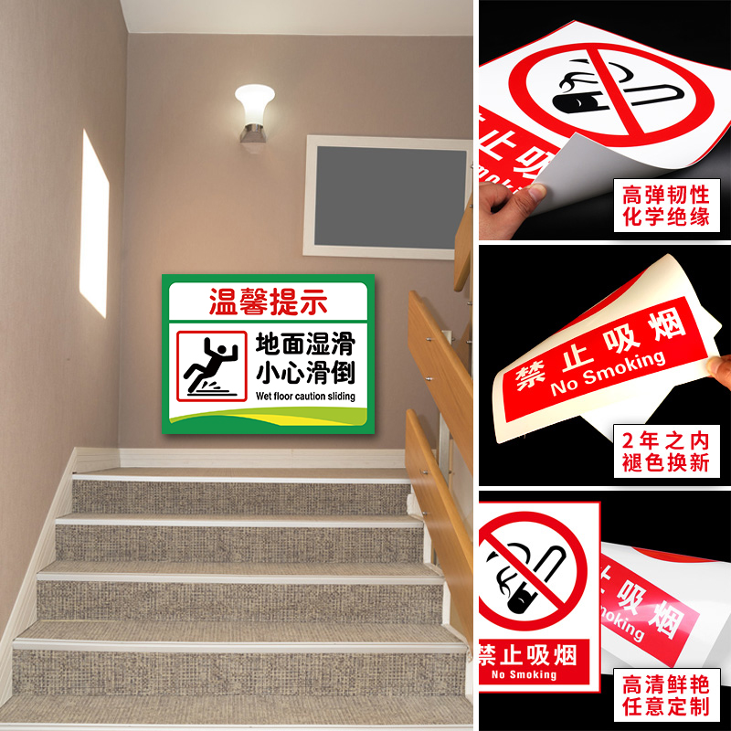 小心地滑提示牌地面湿滑当心滑倒温馨提示牌食堂浴室游泳馆标识牌雨天路滑警示牌上下楼梯注意安全标识牌定制
