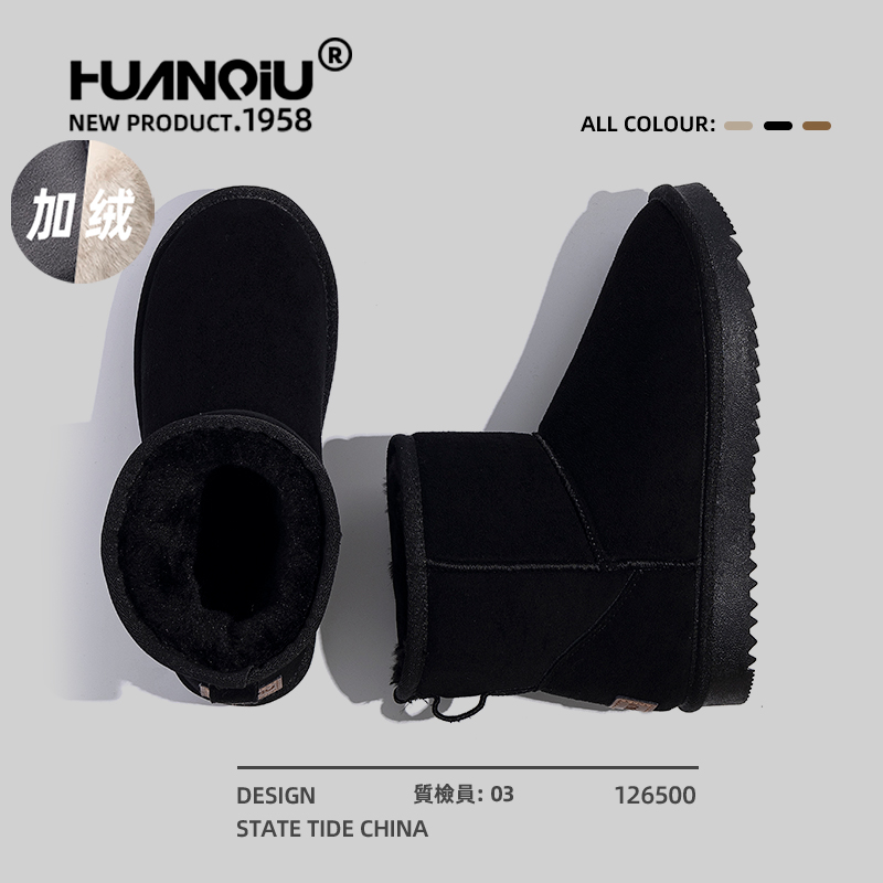 棉鞋 环球加绒加厚黑色雪地靴女款 皮毛一体保暖冬季 爆款 女 2025新款