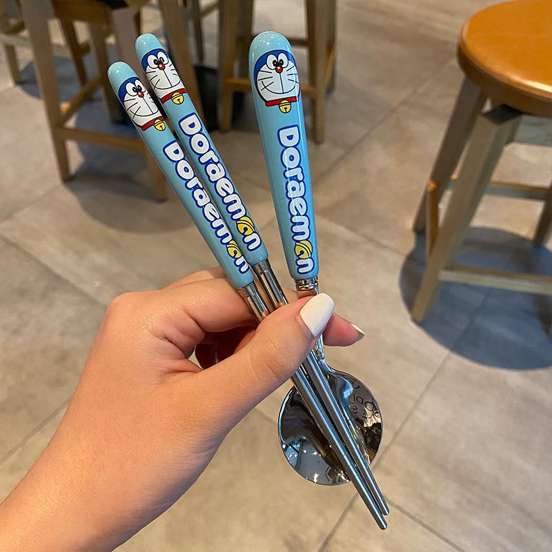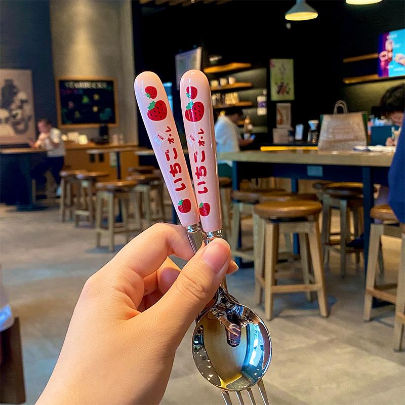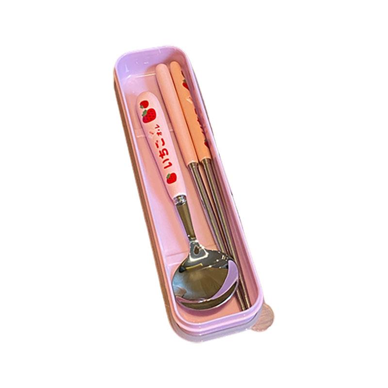 304不锈钢勺子筷子叉子三件套装 儿童可爱草莓餐具小学生便携上班