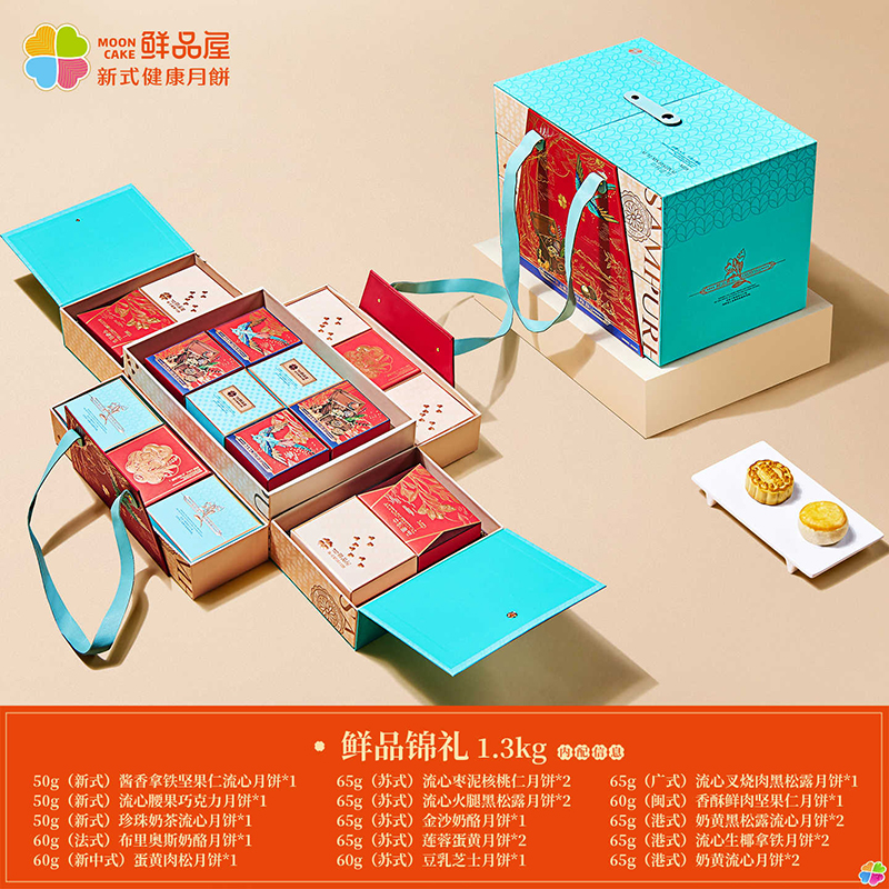 鲜品屋中秋礼盒2025新款 1.3kg鲜品锦礼莲蓉蛋黄流心月饼节日送礼