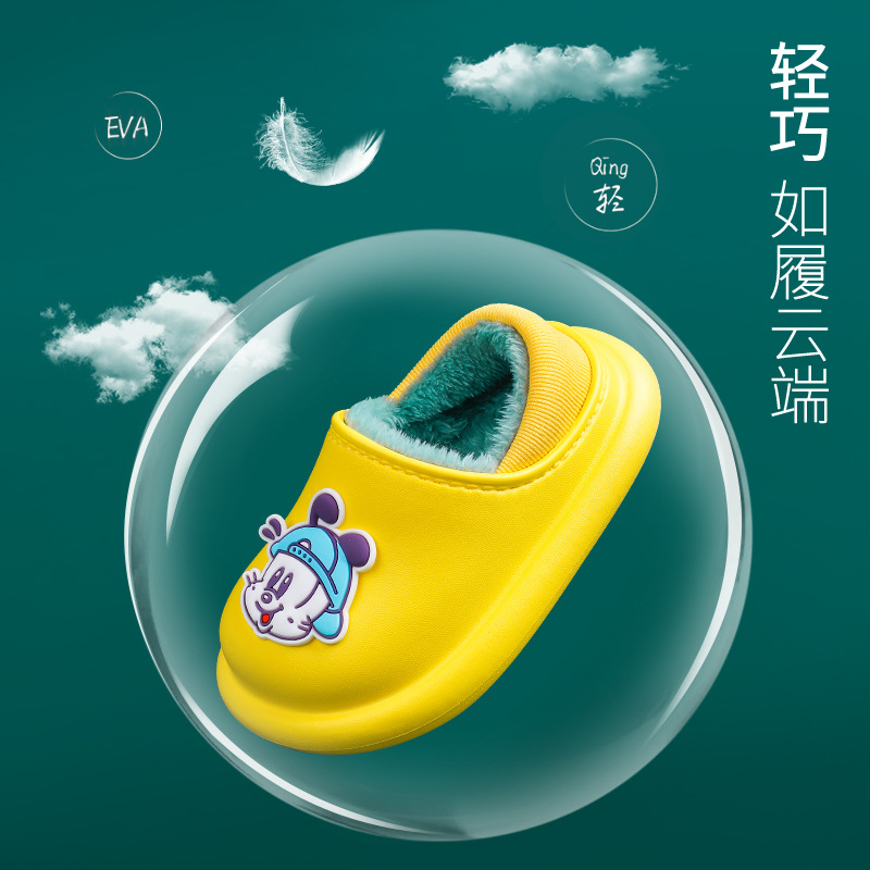巴布豆儿童棉鞋 防滑防水小宝宝室内冬加绒男童家居女童包跟棉拖鞋