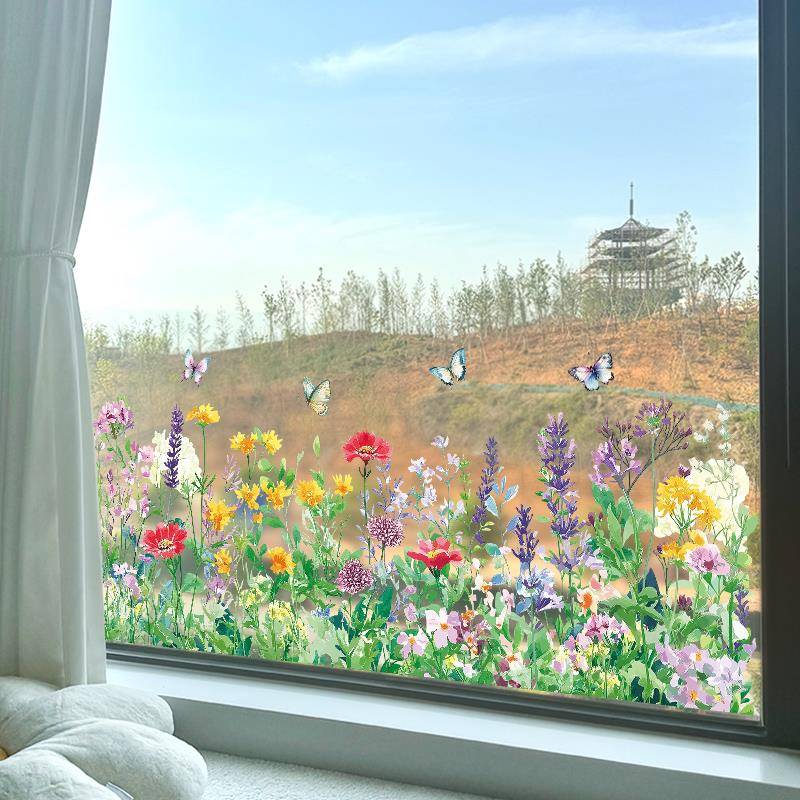 商场店面门窗踢脚线玻璃贴纸装 饰花草地脚线墙贴自粘防水双面贴画