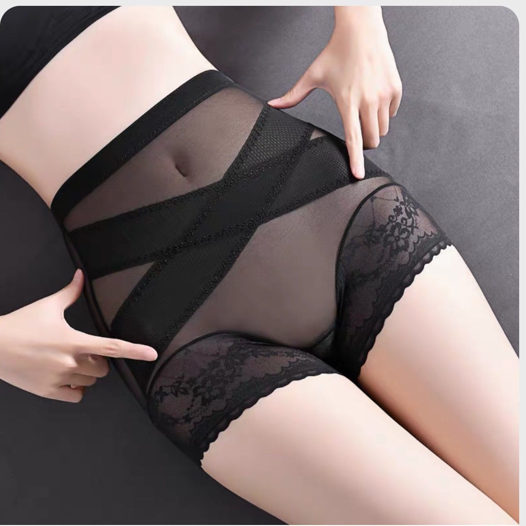 高腰束身束腰女瑜伽内裤 安全打底裤 塑身 蕾丝薄款 收腹小肚子提臀裤