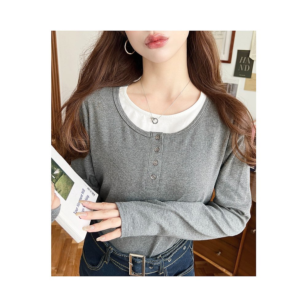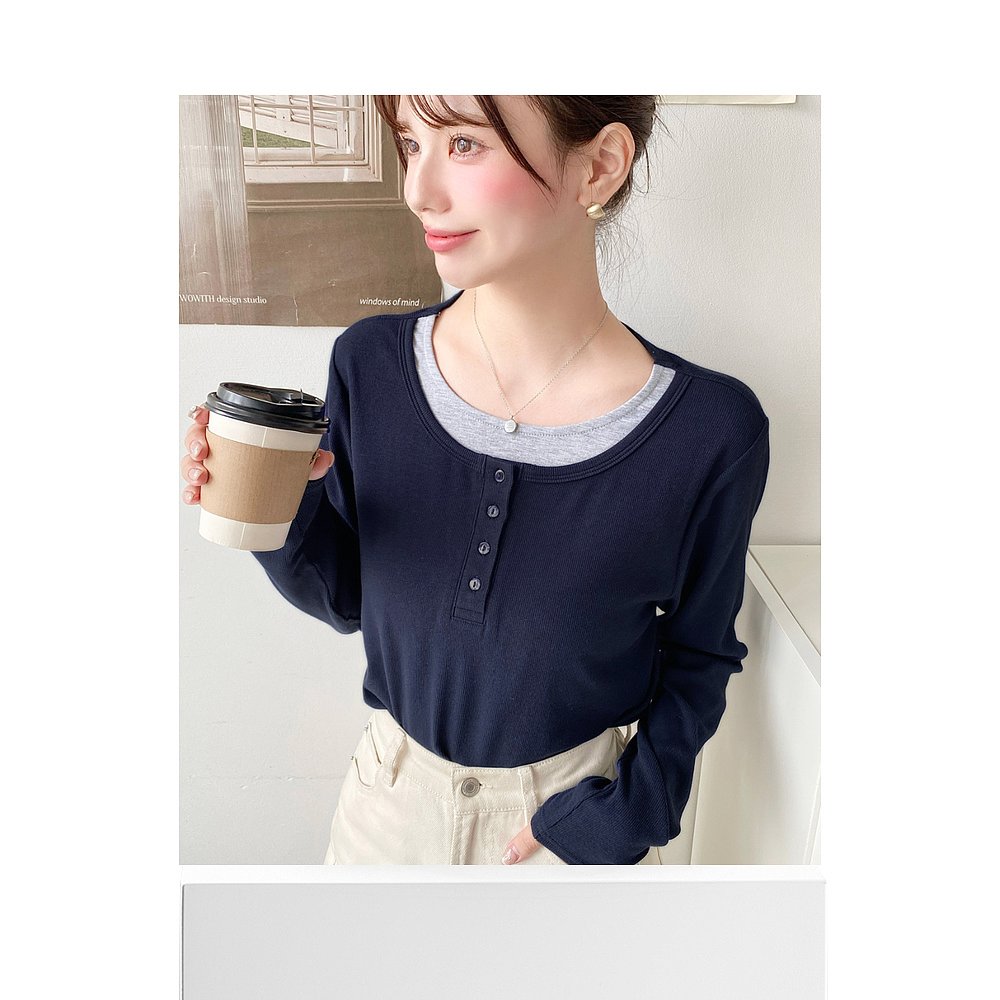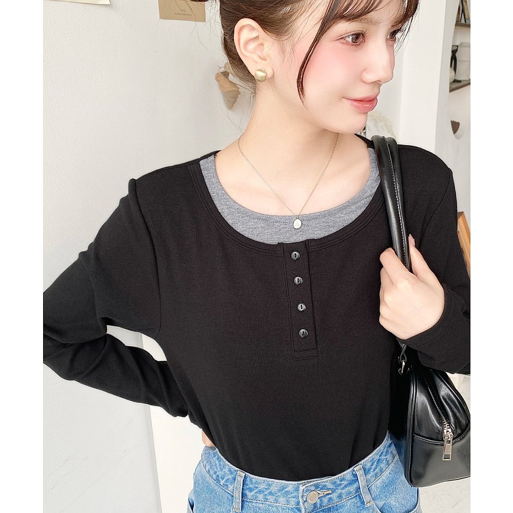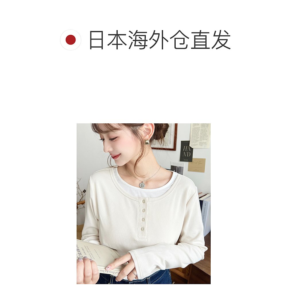 T恤 1h可退 仿层次设计亨利领长袖 女装 简约百搭 日本直邮moment
