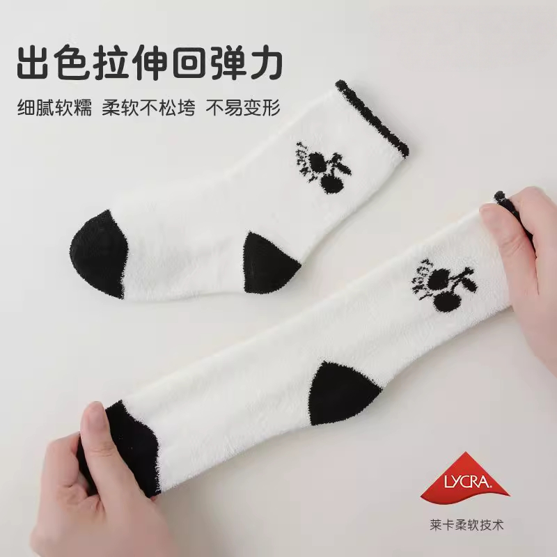 有棵树袜子纯棉女士秋冬7A抗菌透气中筒袜白色长筒袜 复古花纱