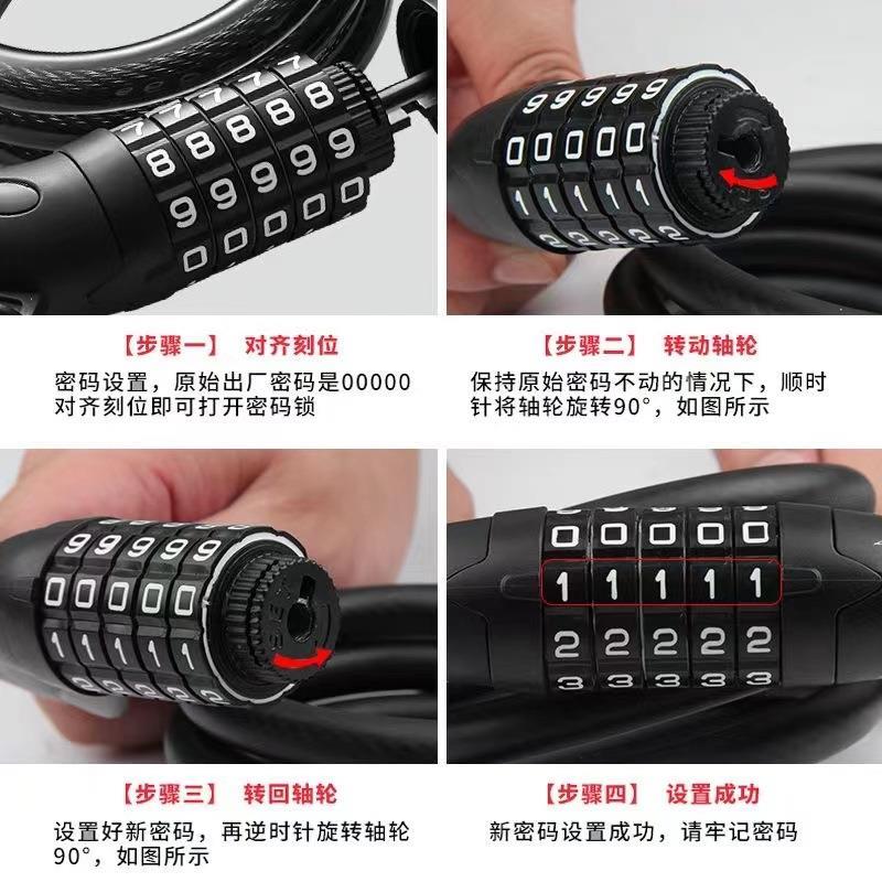 德国自行车锁防盗锁密码 锁便携电瓶电动车山地儿童单车专用链条锁