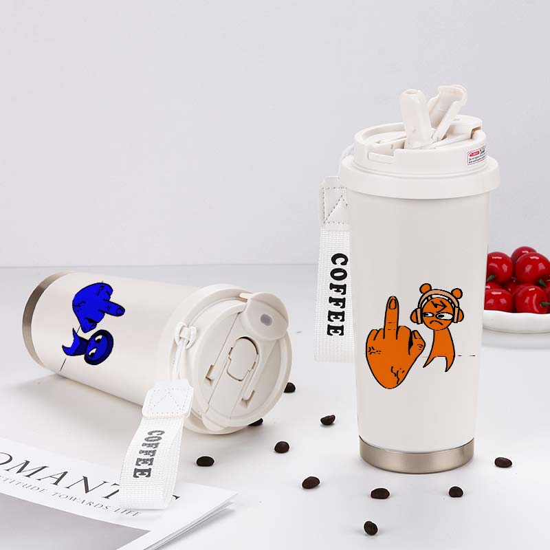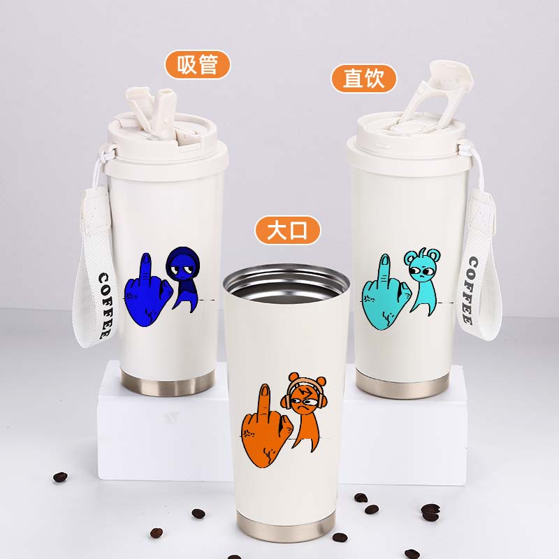 节奏盒子周边保温杯杰文奥伦小天二次元 大容量儿童不锈钢吸管水杯