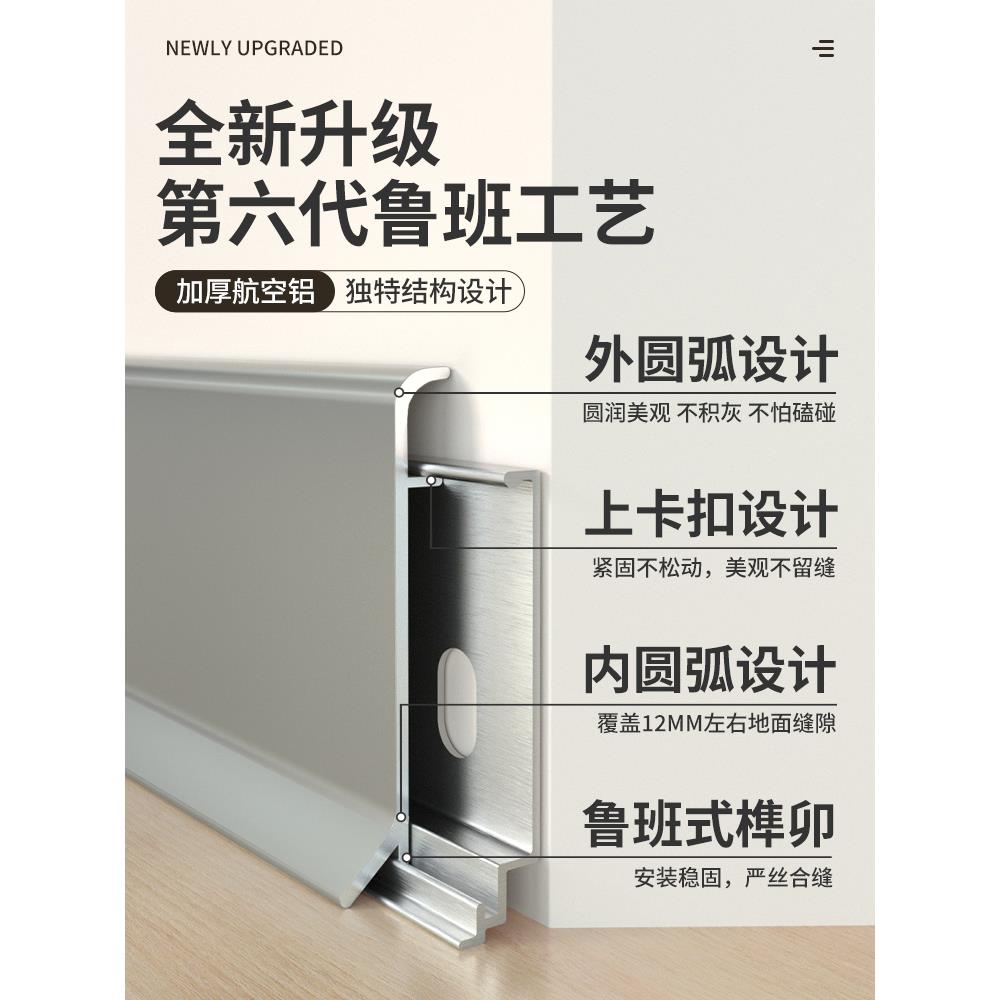铝合金踢脚线任意弯弧卡扣式 极窄贴脚线6cm8金属不锈钢防水地脚线