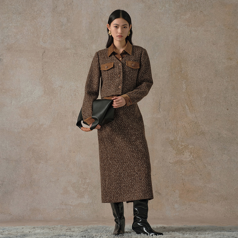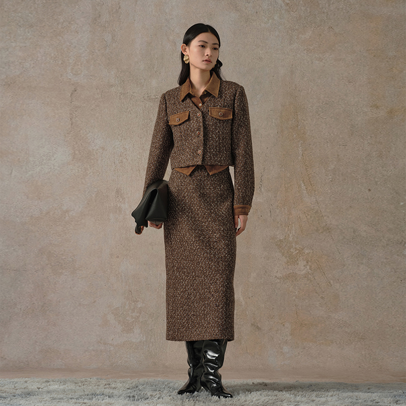 女高级感两件套外套半身裙 阿依莲复古气质小香风套装 商场同款