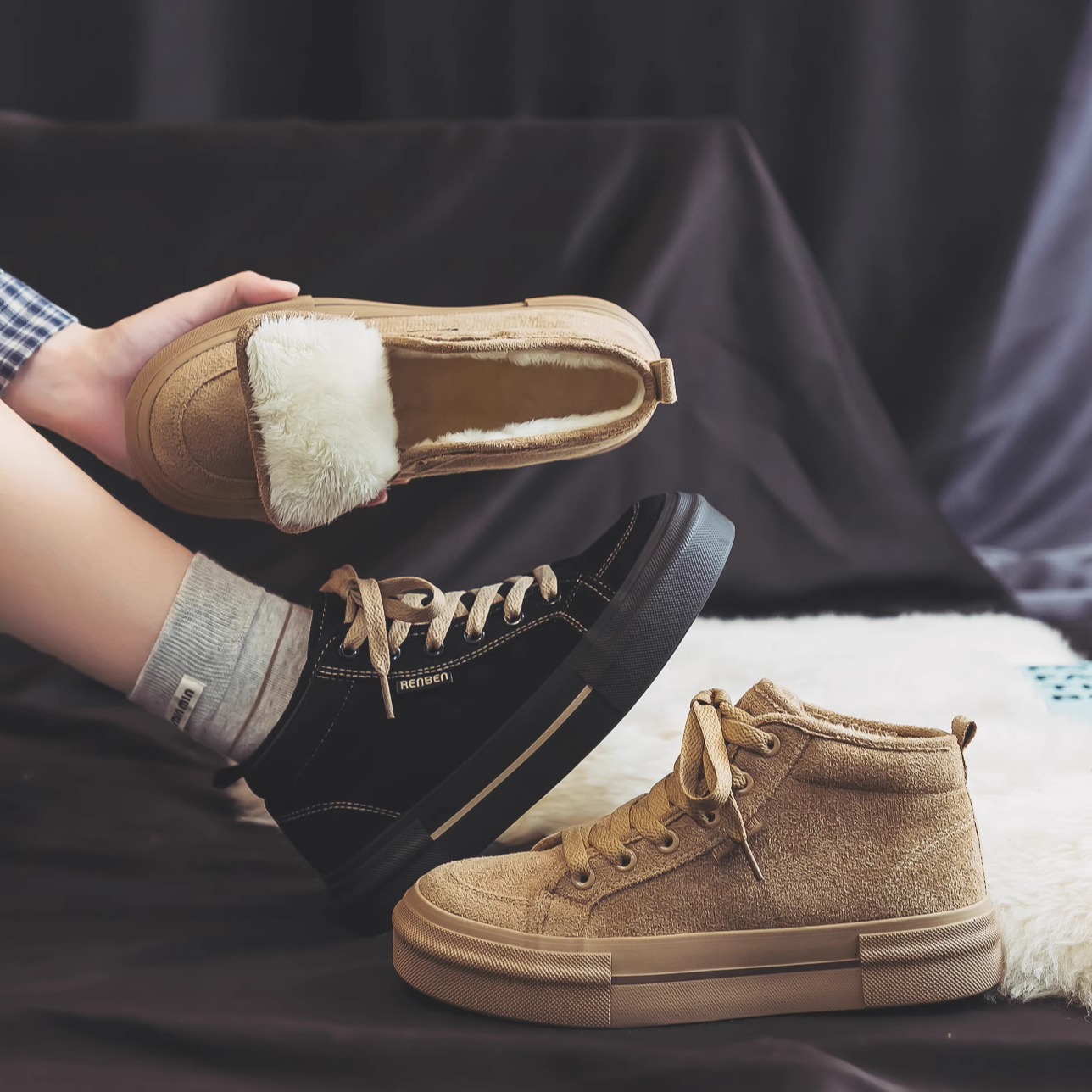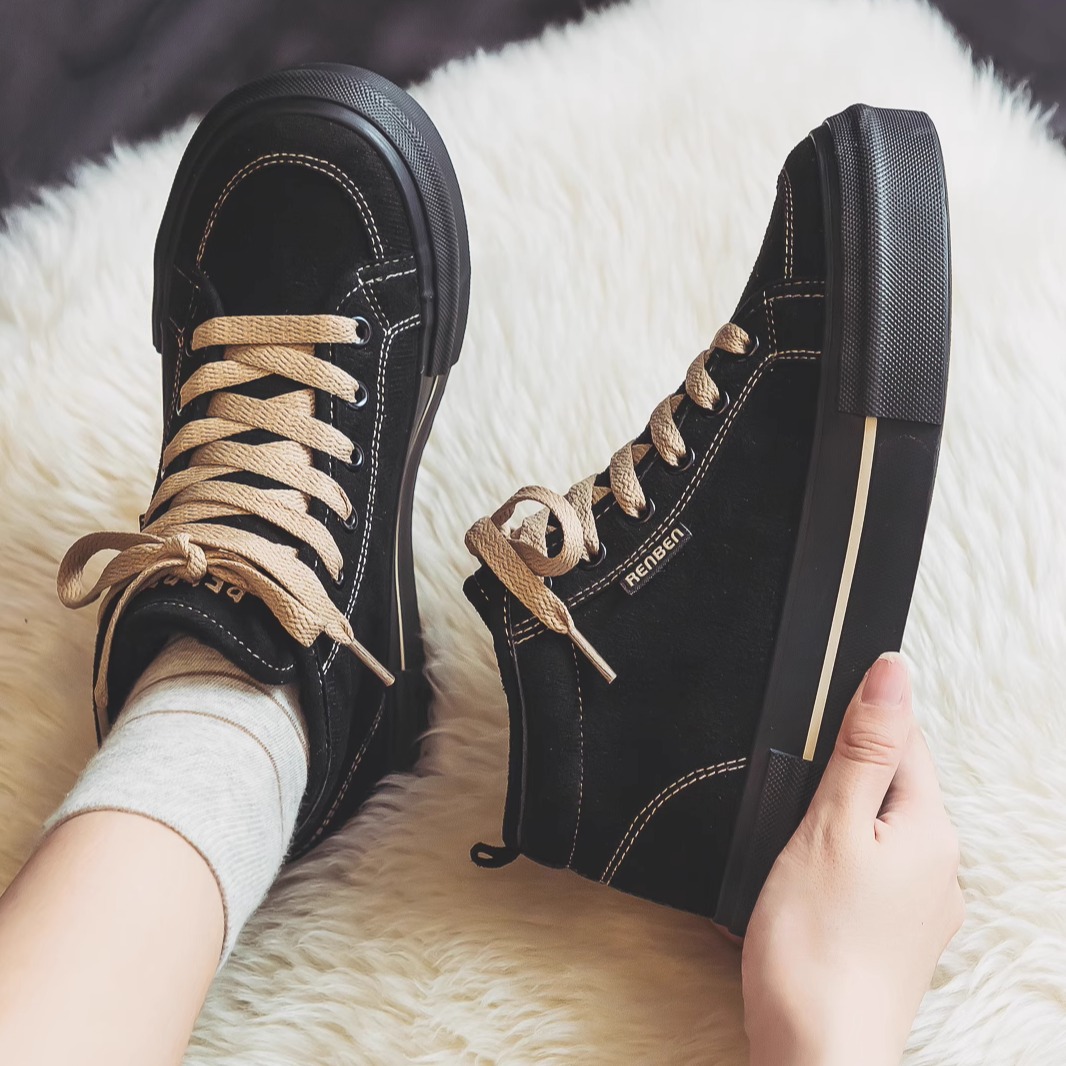 增高帮老爹鞋 帆布鞋 松糕厚底半拖爆款 秋冬小白鞋 麦昆百 女2025新款