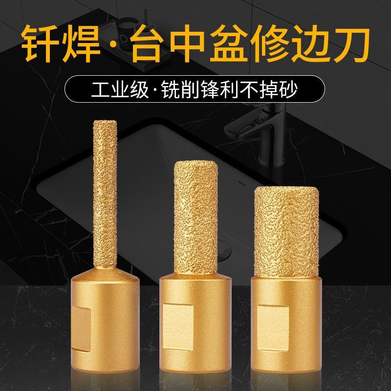 钎焊圆柱打磨头石英石大理石材瓷砖后挡水磨轮角磨机圆角修边铣刀