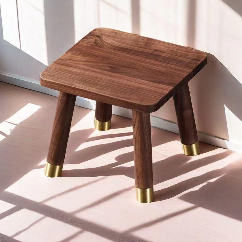 闲泰北美黑胡桃原木矮凳儿童凳榫卯结构实木小方凳换鞋 凳子矮方凳