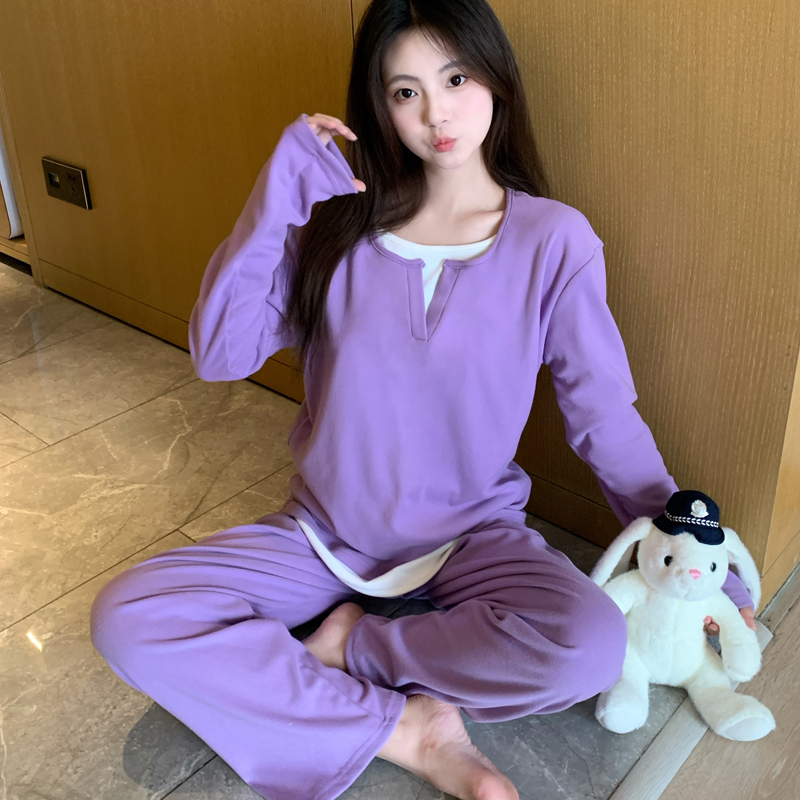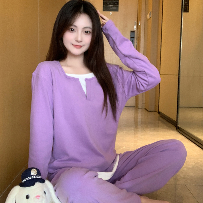 秋季 套装 睡衣女士长袖 束脚家居服爆款 女可外穿 带胸垫长裤 2025新款