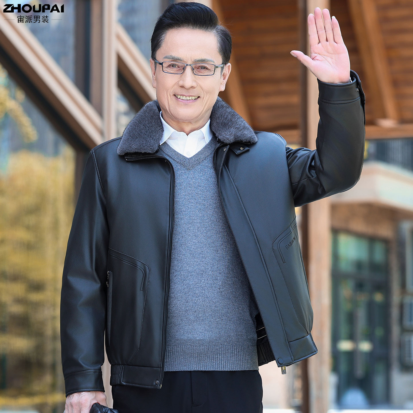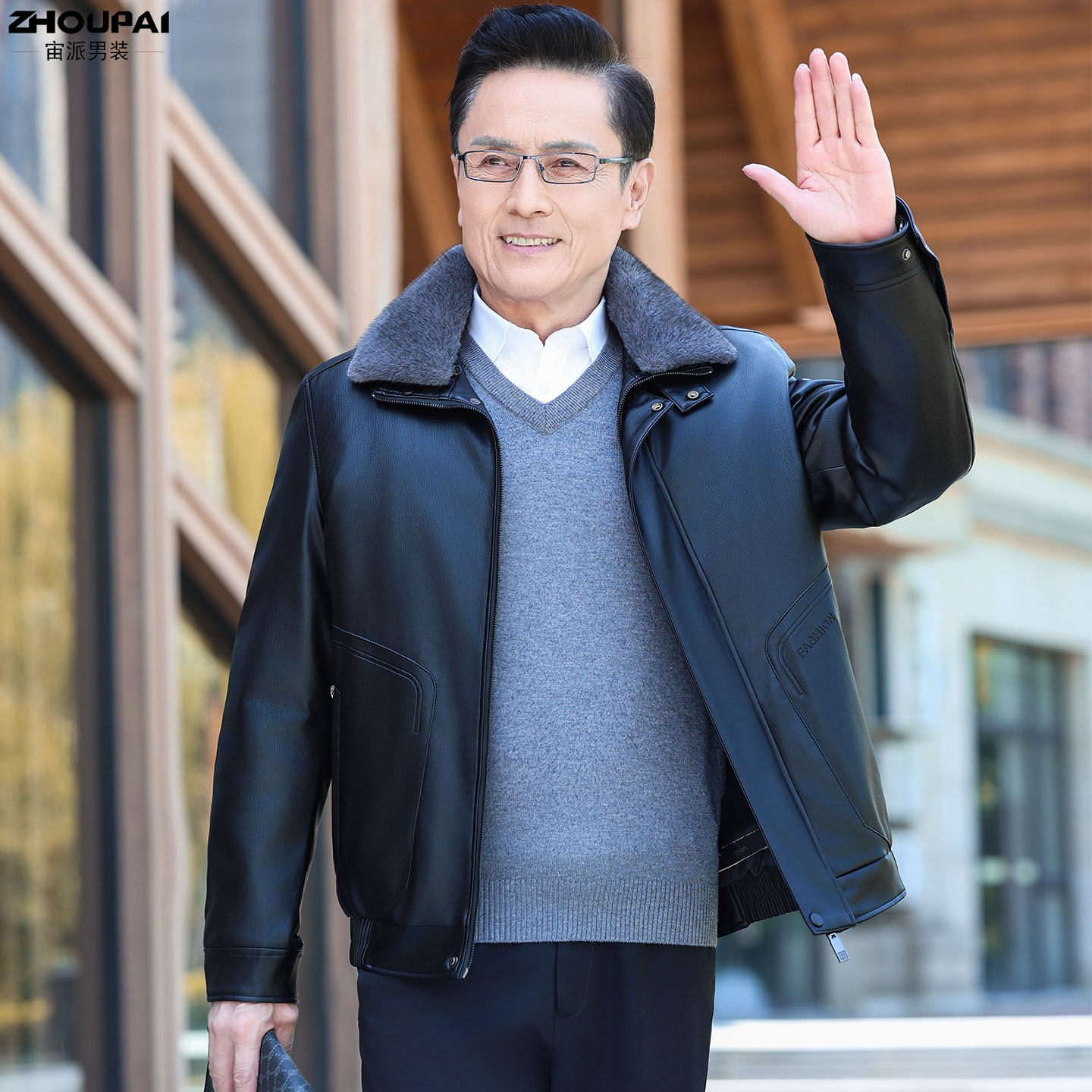 男 套装 春秋薄款 皮衣男外套防水耐磨中老年干活工作服皮衣皮裤