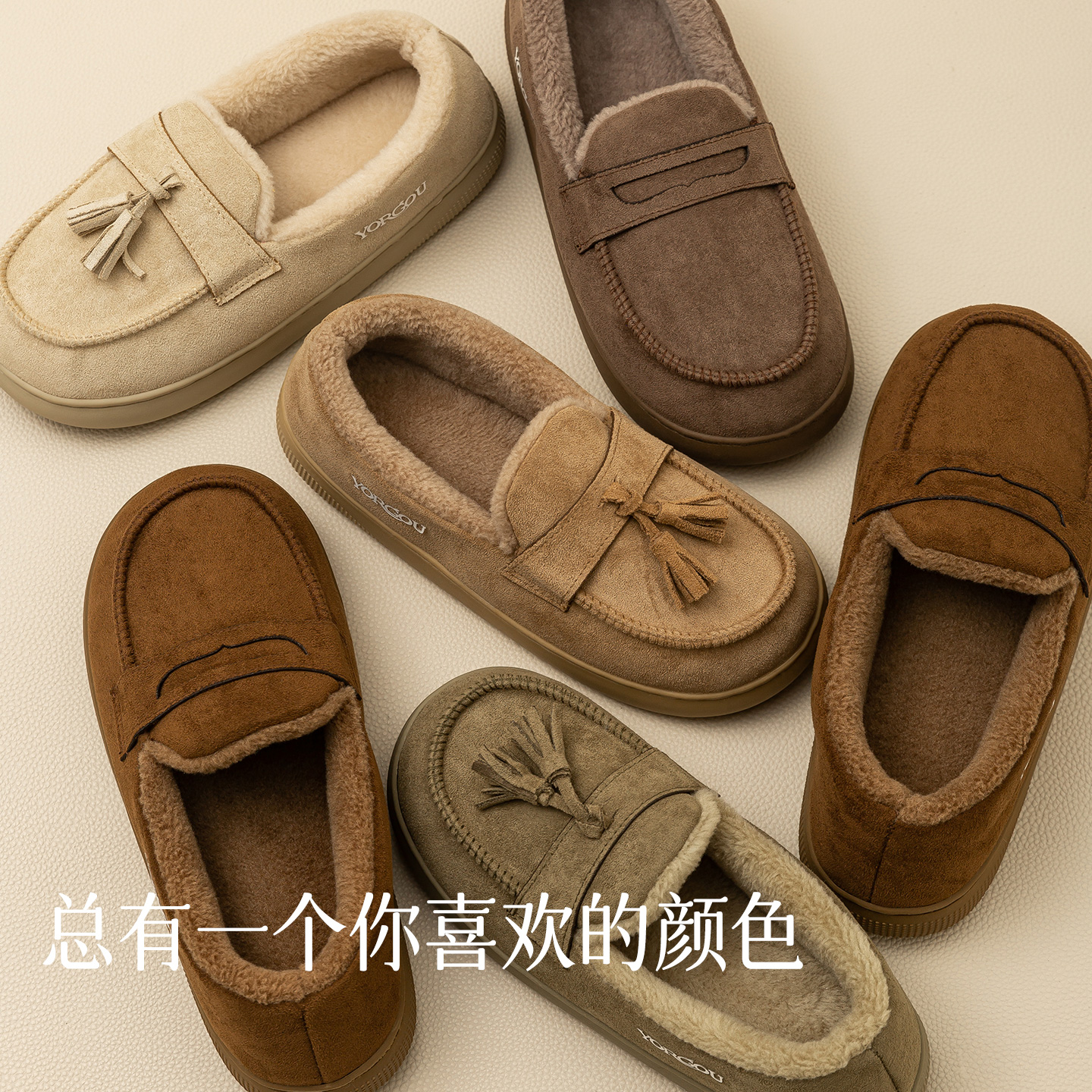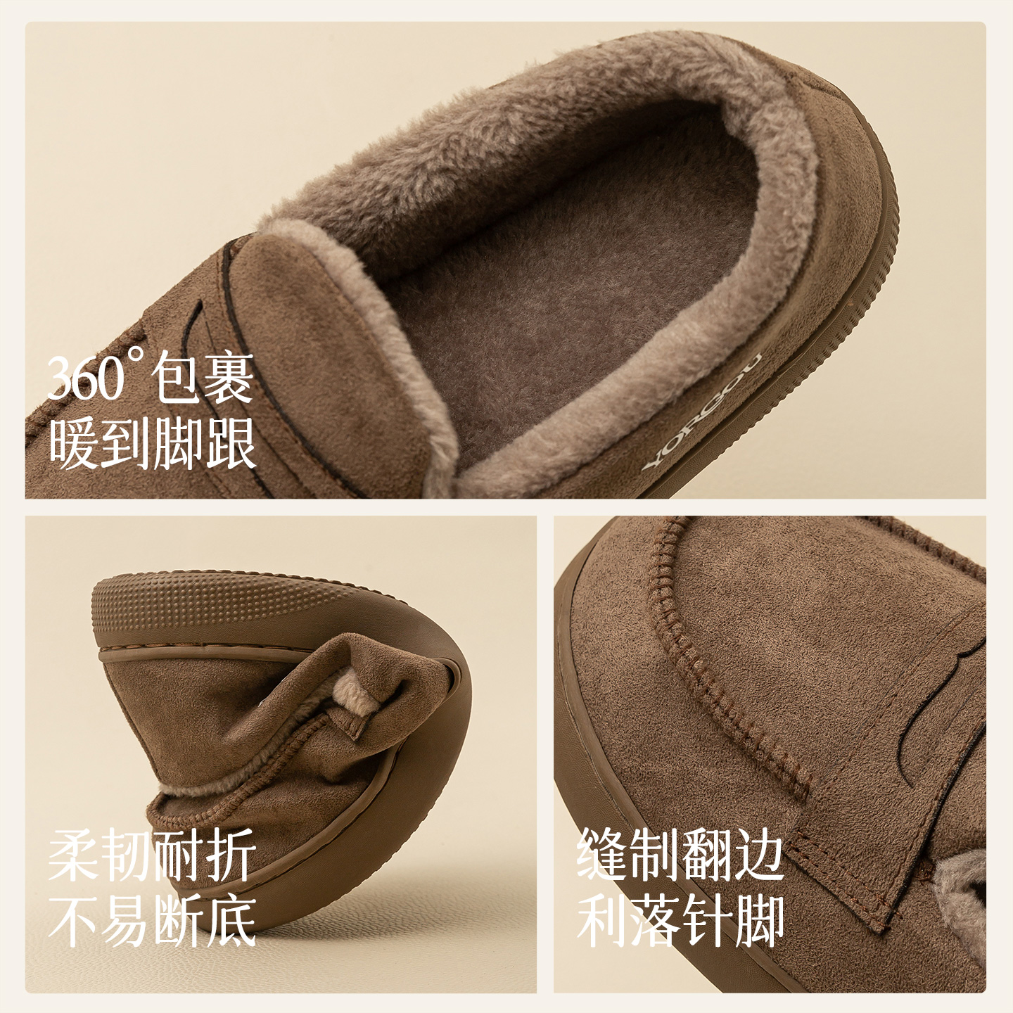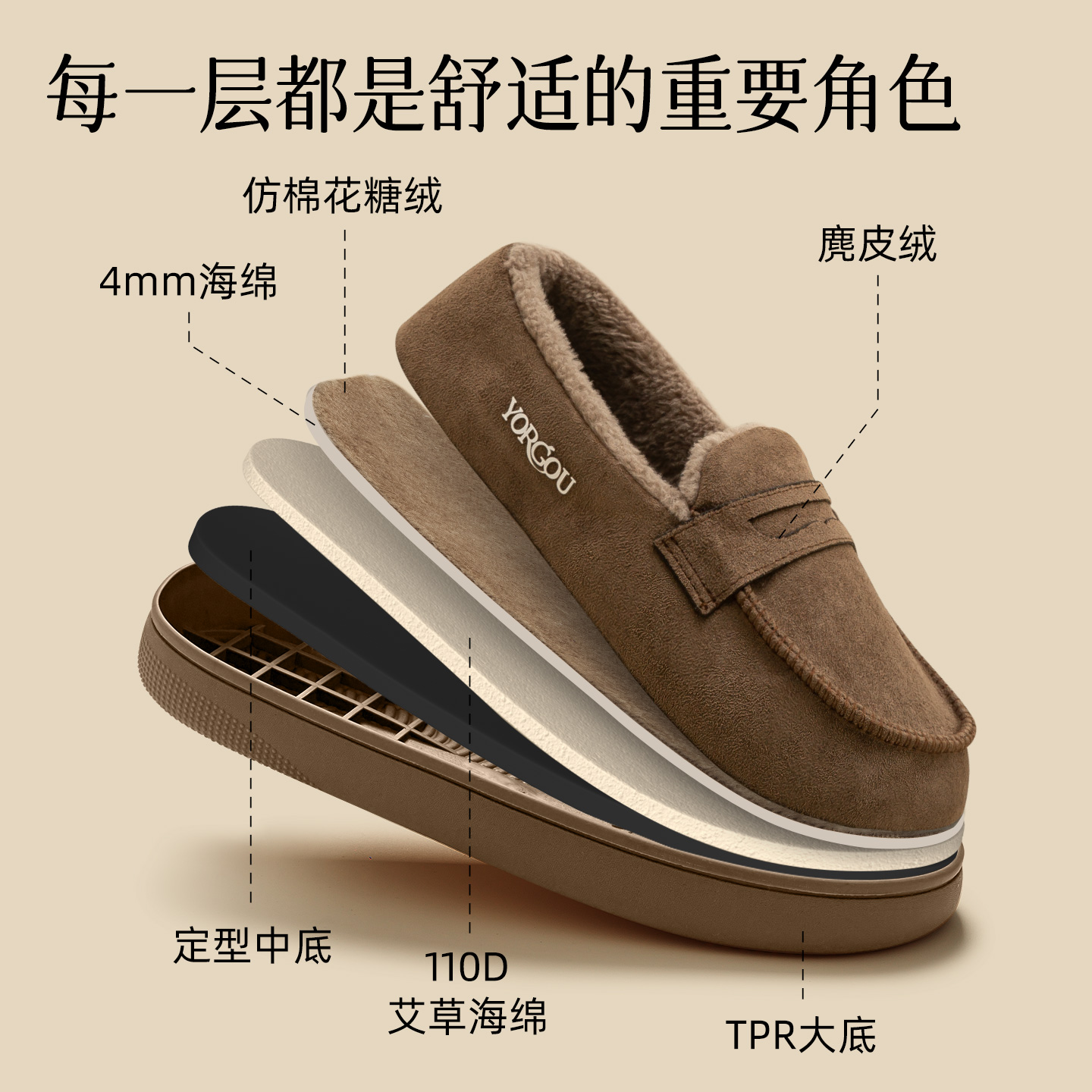 外穿乐福暖居家室内包跟棉拖鞋 秋冬季 女冬天 休闲豆豆棉鞋 远港男士
