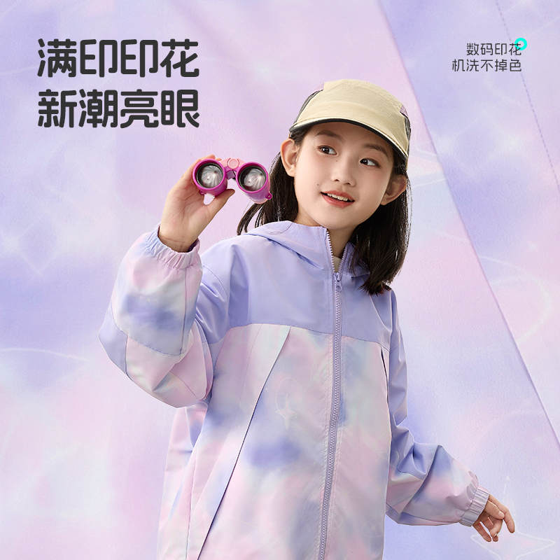 上衣 连帽外套儿童秋装 拉夏贝尔女童冲锋衣2025新款 防风衣女孩秋季