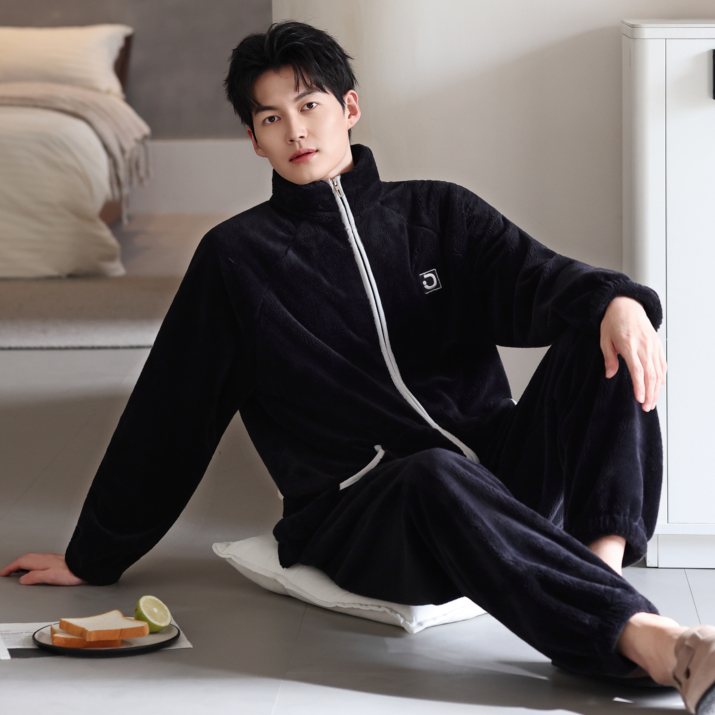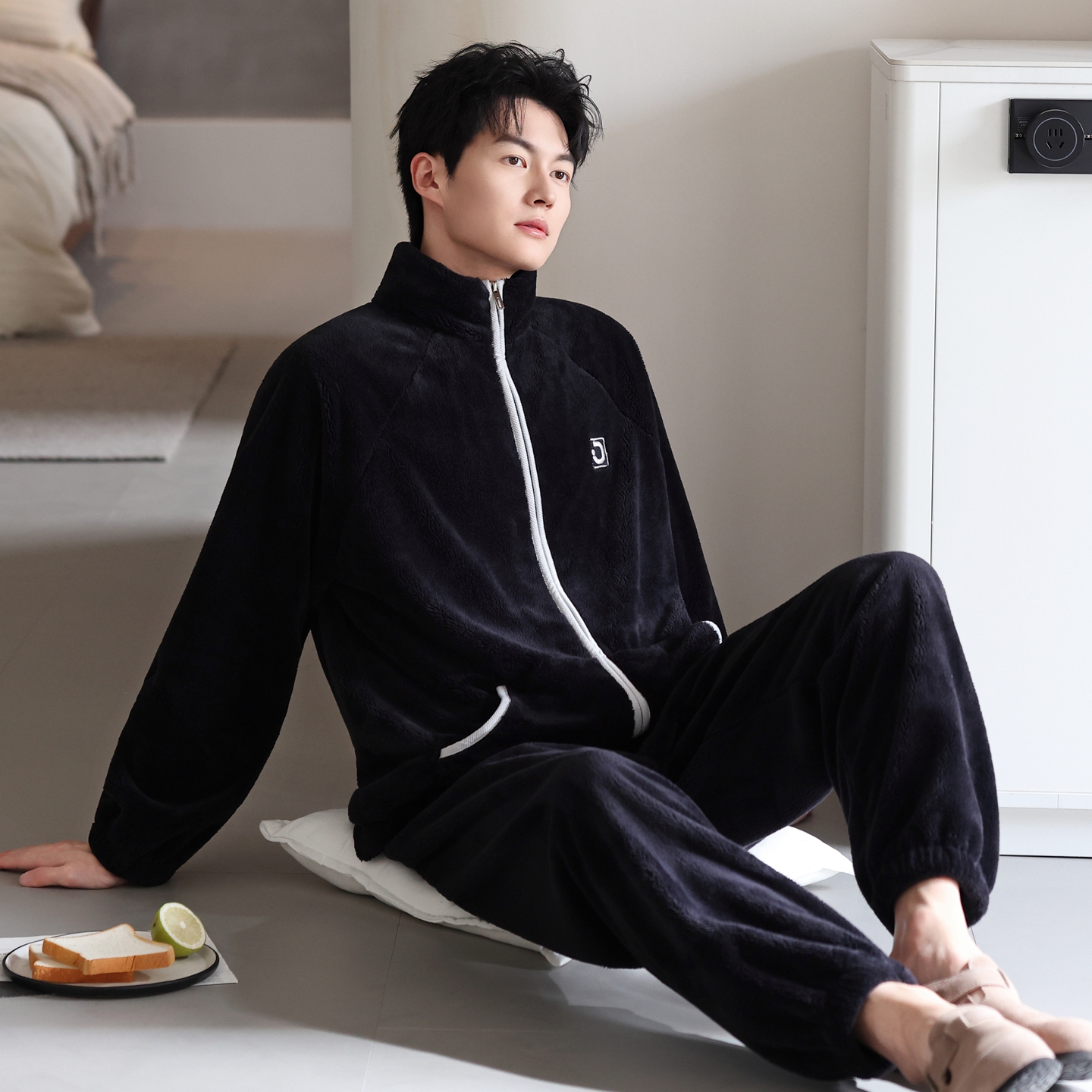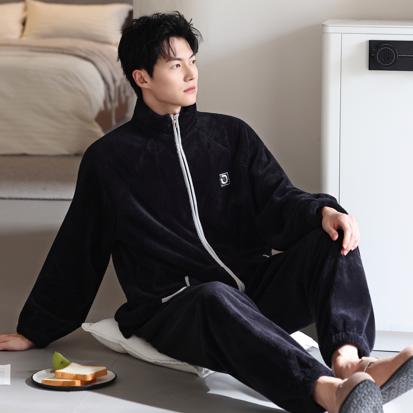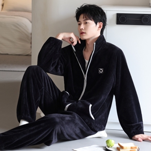 家居服套装 轩靓高级感睡衣男冬季 加绒加厚珊瑚绒薄绒海岛绒春秋款