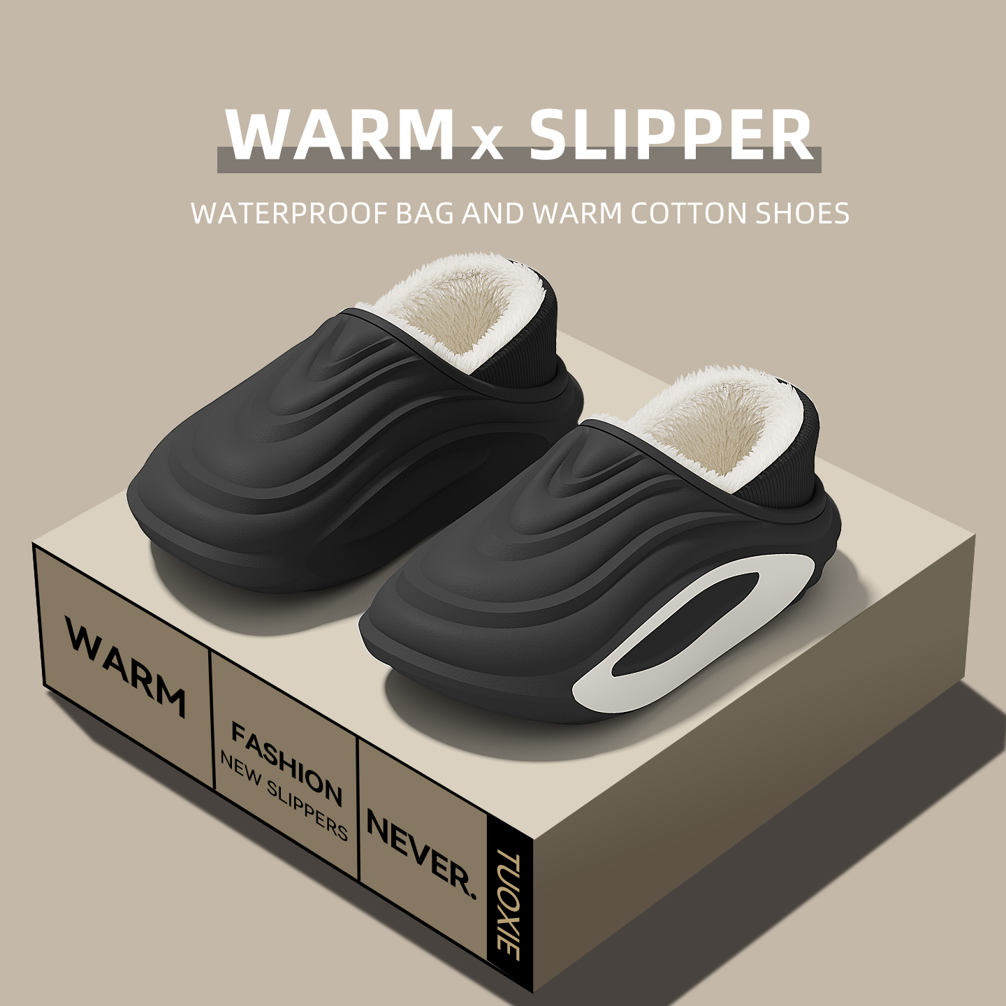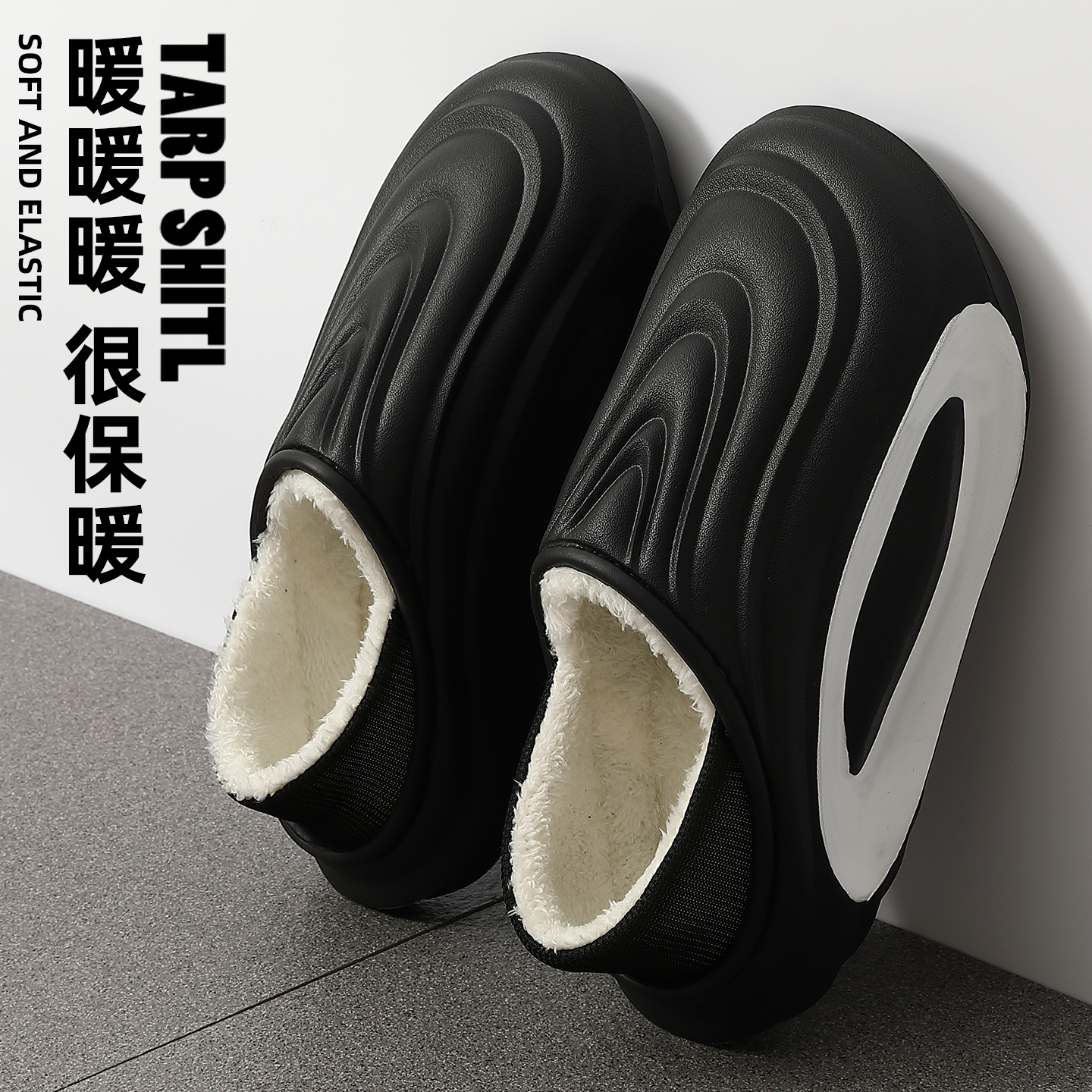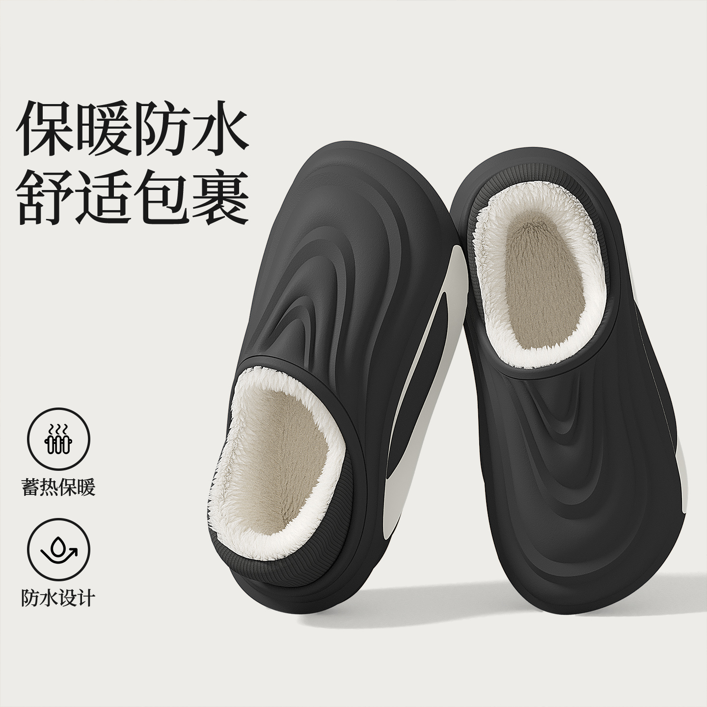 冬季 2025新款 室内家居外穿包跟防滑厚底毛绒保暖男 男款 防水棉拖鞋