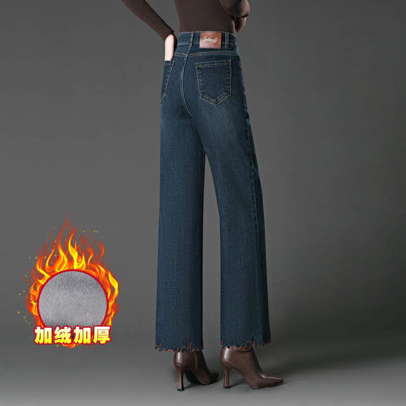 子 高腰宽松显瘦气质百搭直筒长裤 秋冬加绒阔腿牛仔裤 女2025新款