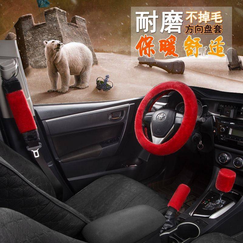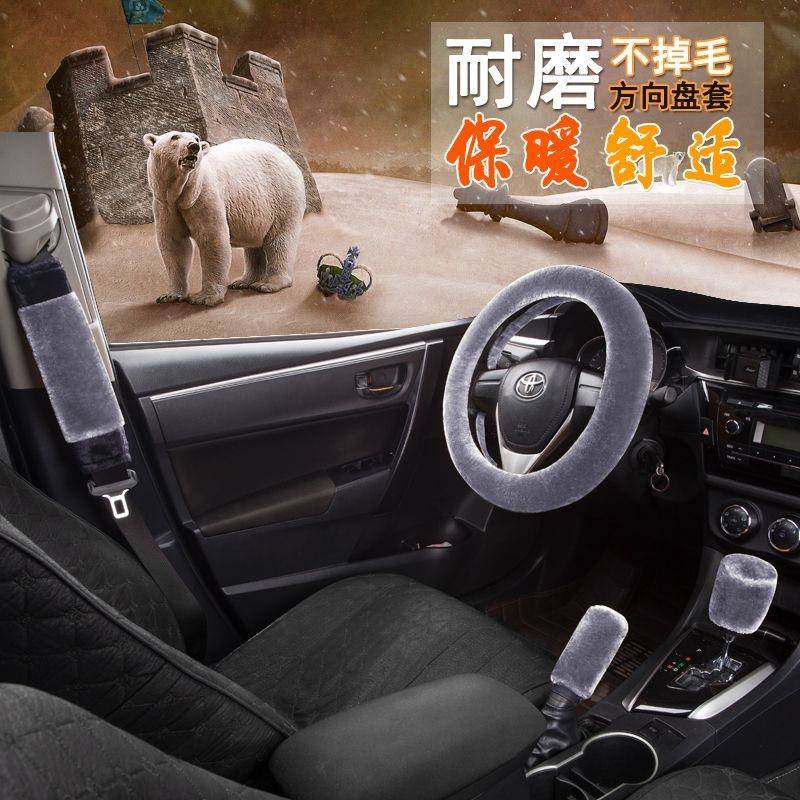 保暖汽车方向盘套通用女短毛绒手刹档位套三件套装 防滑 把套秋冬季