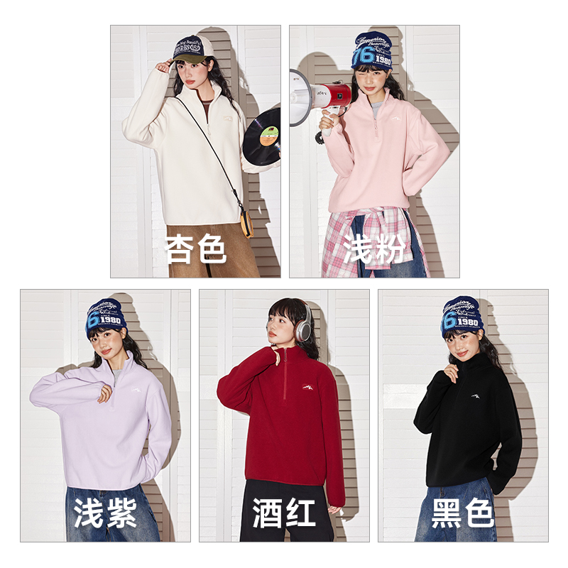 半拉链小个子加厚保暖卫衣女款 唐狮摇粒绒外套女2025新款 秋冬季
