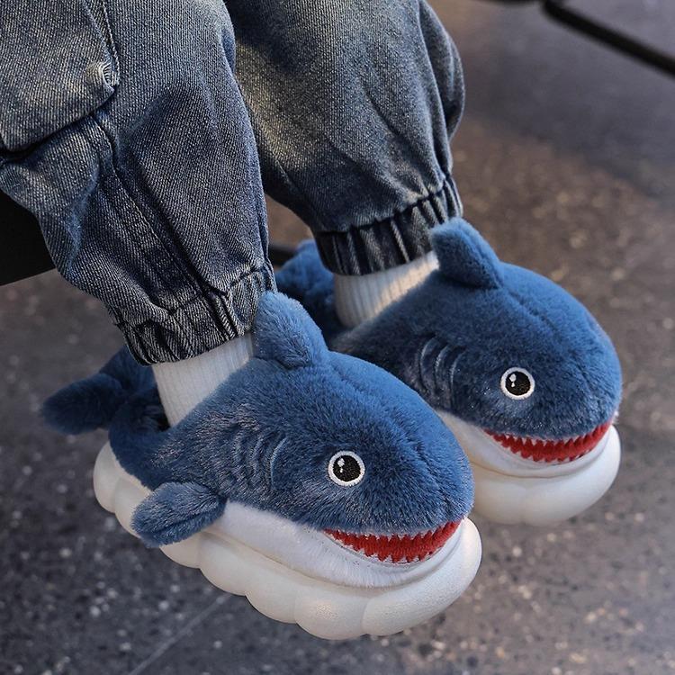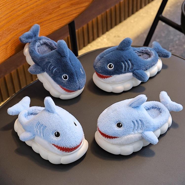 男童棉鞋 儿童棉拖鞋 小孩宝宝家居鞋 可爱鲨鱼包跟毛毛鞋 冬 男孩冬季