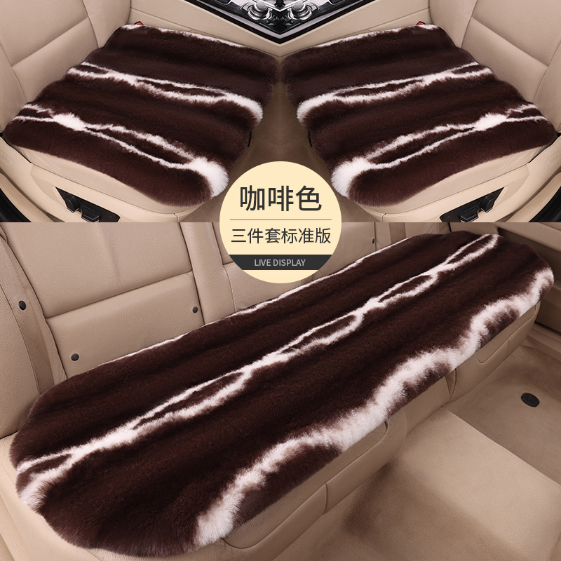 汽车坐垫冬季 加绒加厚通用女 短毛绒保暖毛绒竖纹网红三件套秋冬季