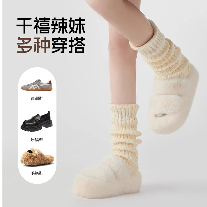 针织袜套白色袜子女秋冬季 JK小腿袜雪地靴腿套保暖加厚长筒堆堆袜