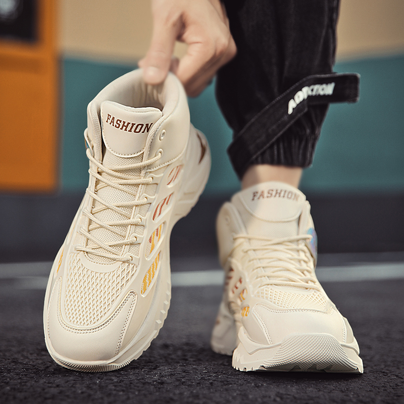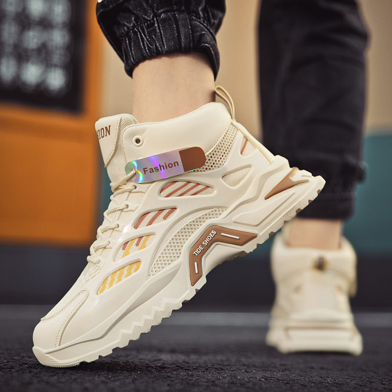 靴子 真皮防水厚底增高工装 森马马丁靴男秋季 高帮百搭休闲白色板鞋