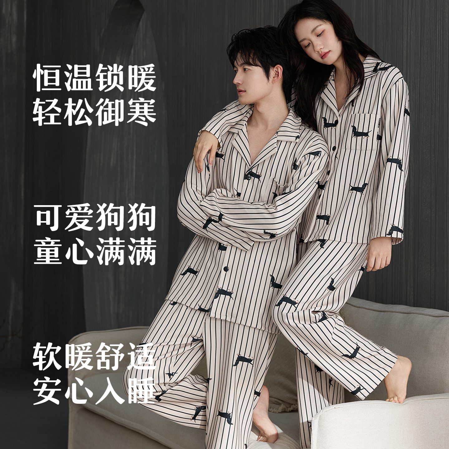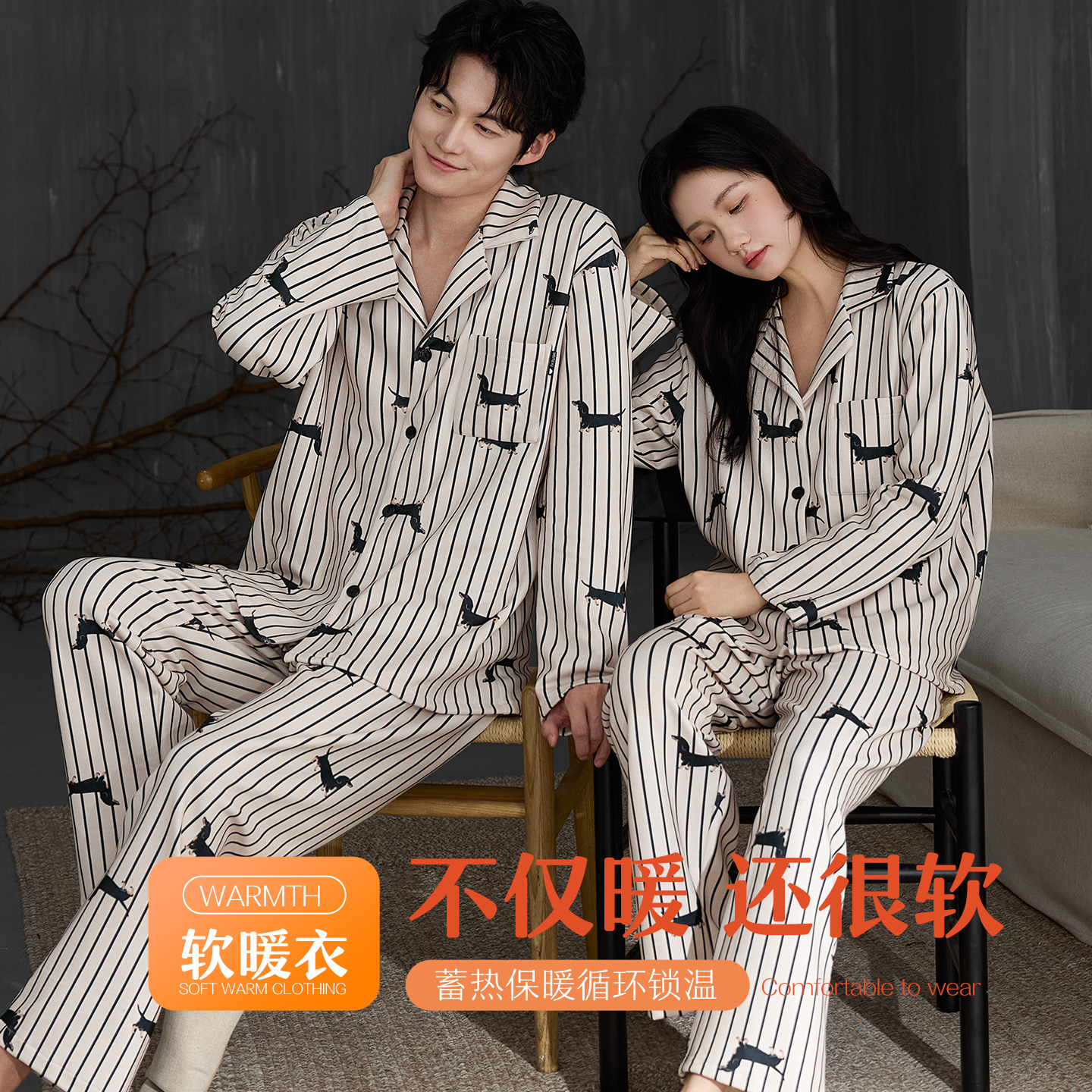 乐姿梦德绒情侣睡衣女秋冬保暖加绒加厚珊瑚绒家居服男套装 可外穿