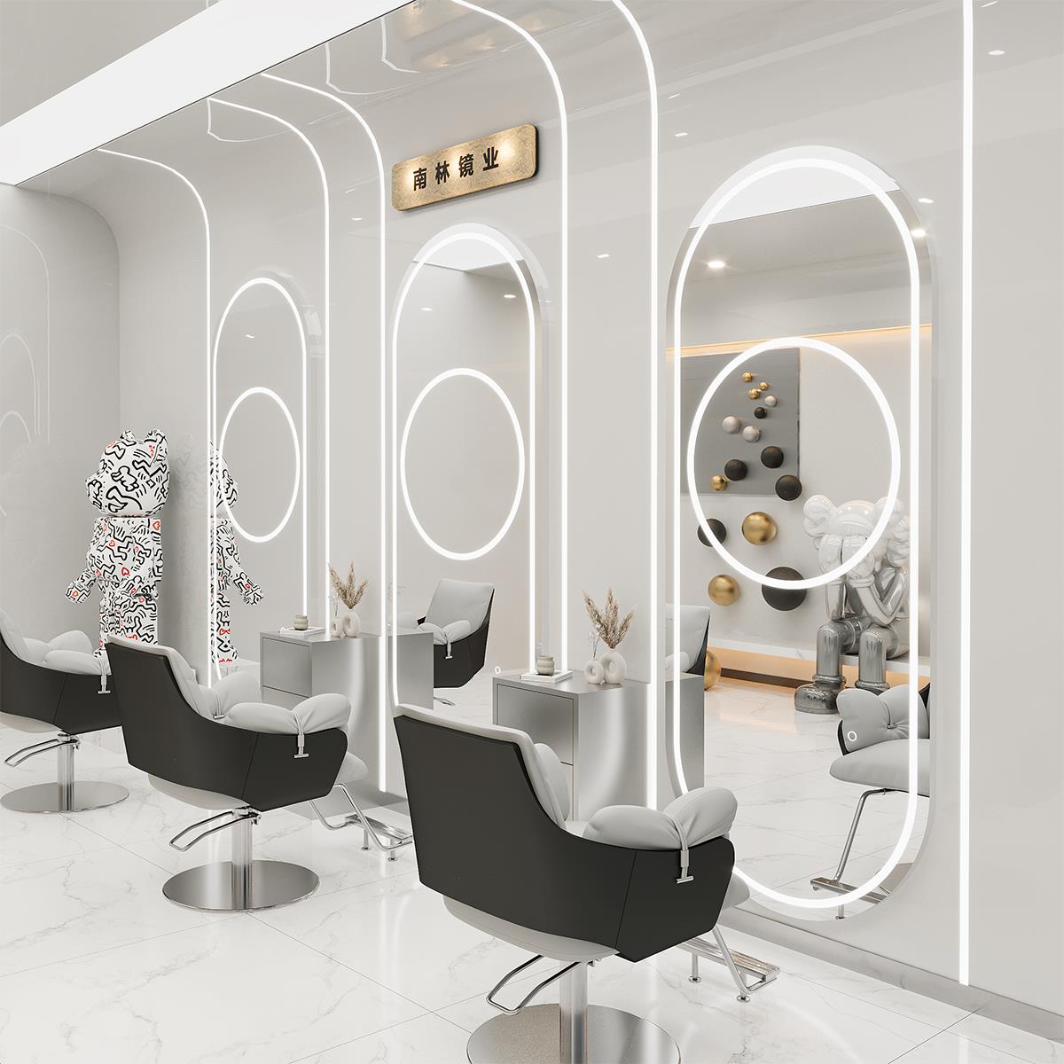 简约理发店镜台发廊专用网红镜子带灯潮挂墙单面美发店镜子可定制