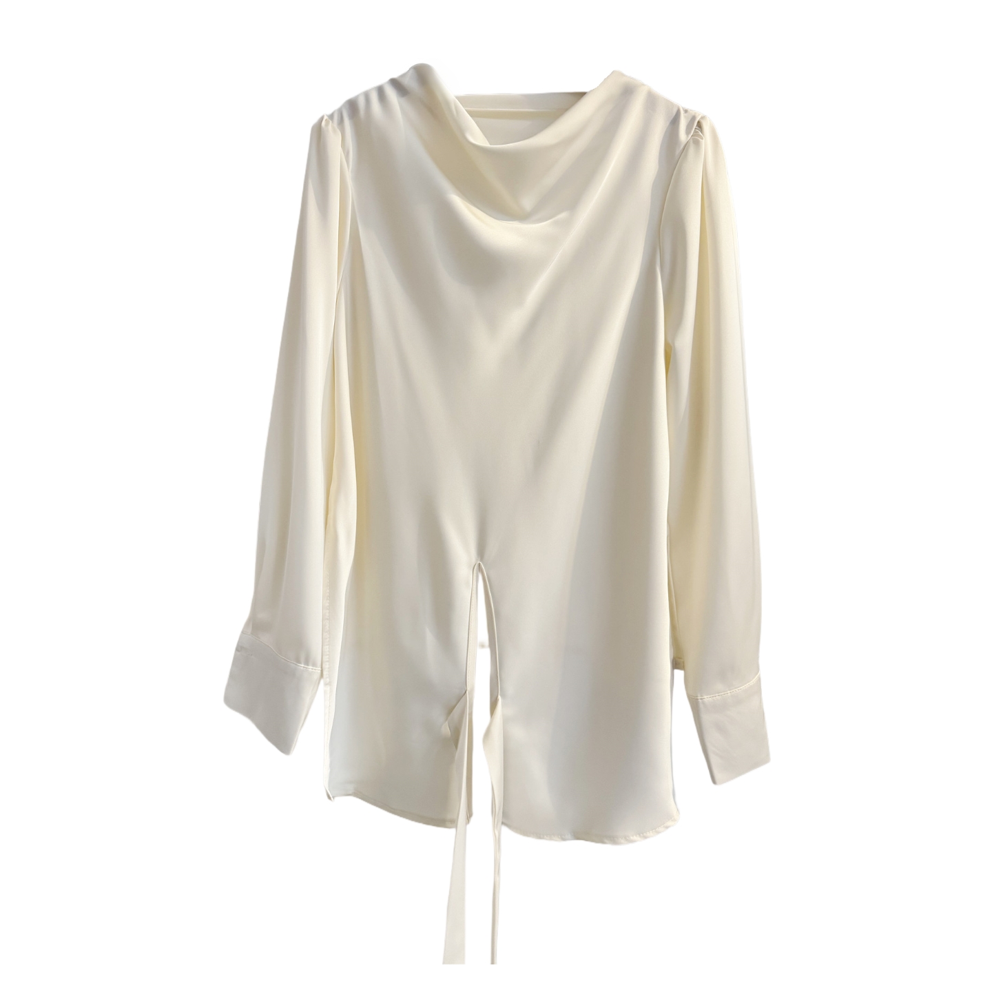2025秋设计感绑带收腰气质小衫 女长袖 上衣 高级感荡领缎面衬衫 法式