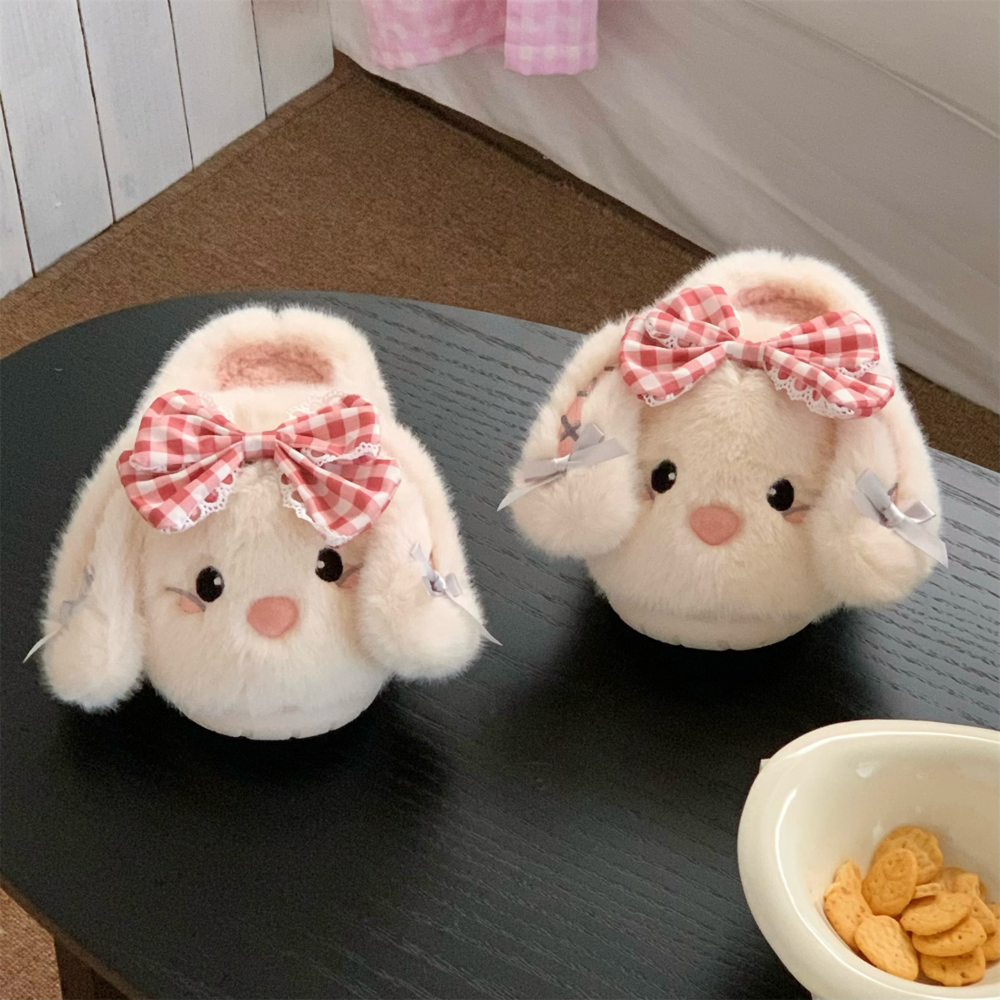 甜美蝴蝶结兔子女士棉拖鞋 新款 冬季 卧室居家防滑少女心保暖毛毛鞋