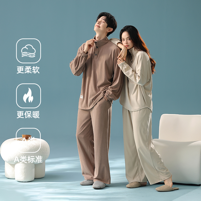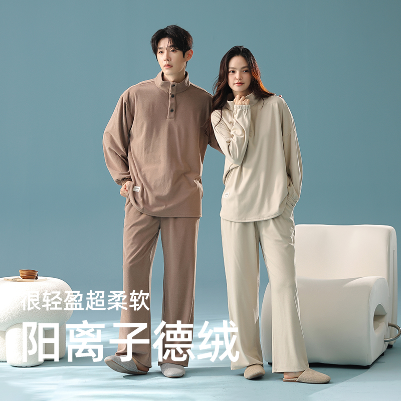 双面薄绒高级感家居服 女阳离子德绒保暖男士 情侣睡衣秋冬新款 长袖