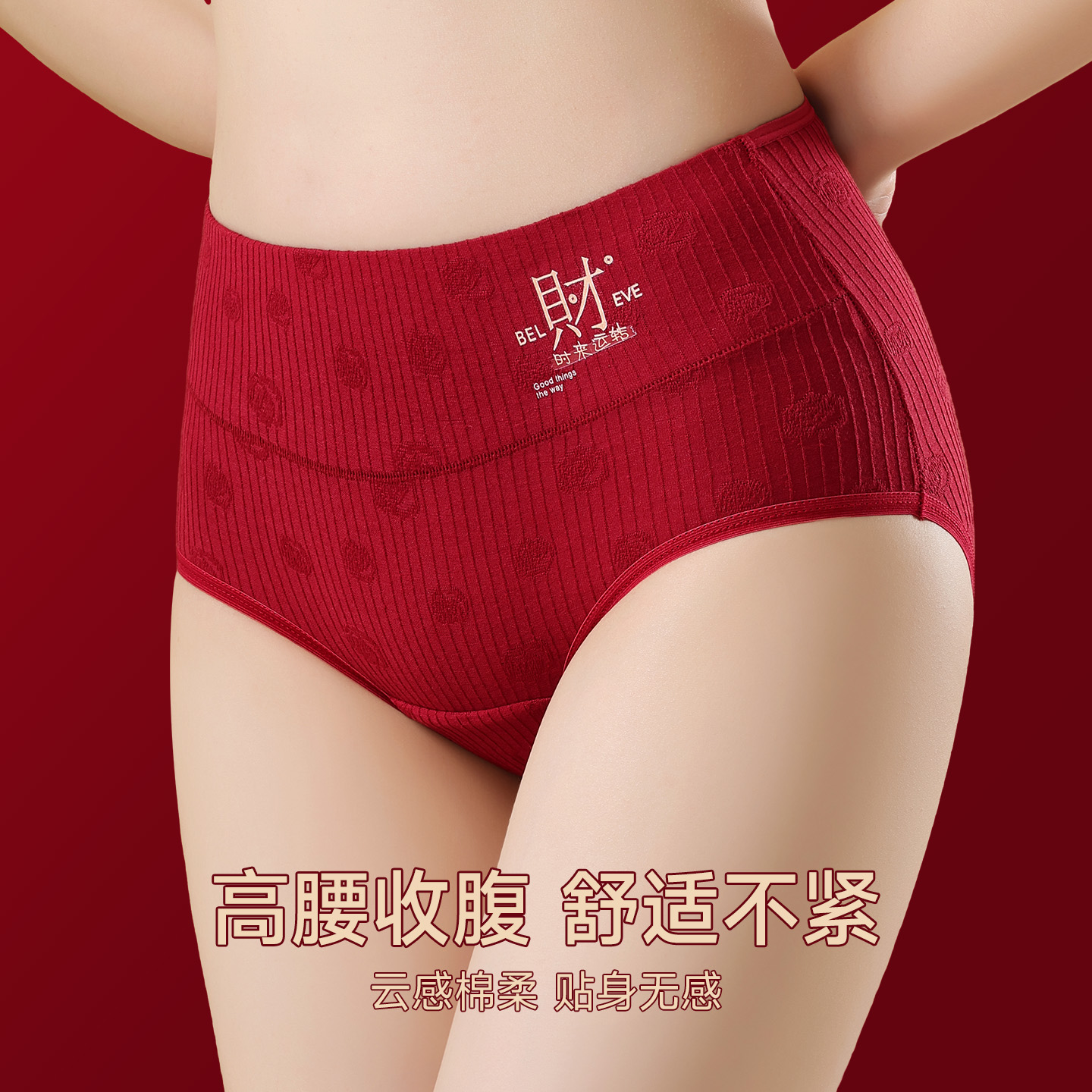 本命年结婚女士三角短裤 纯棉高腰收腹大码 女2025新款 芬腾红色内裤