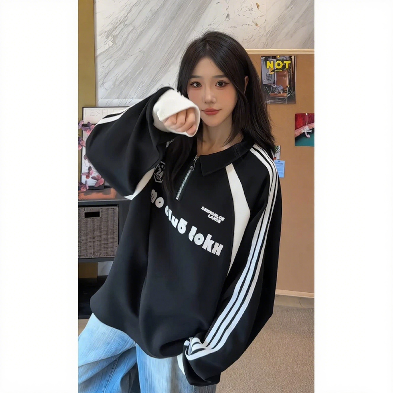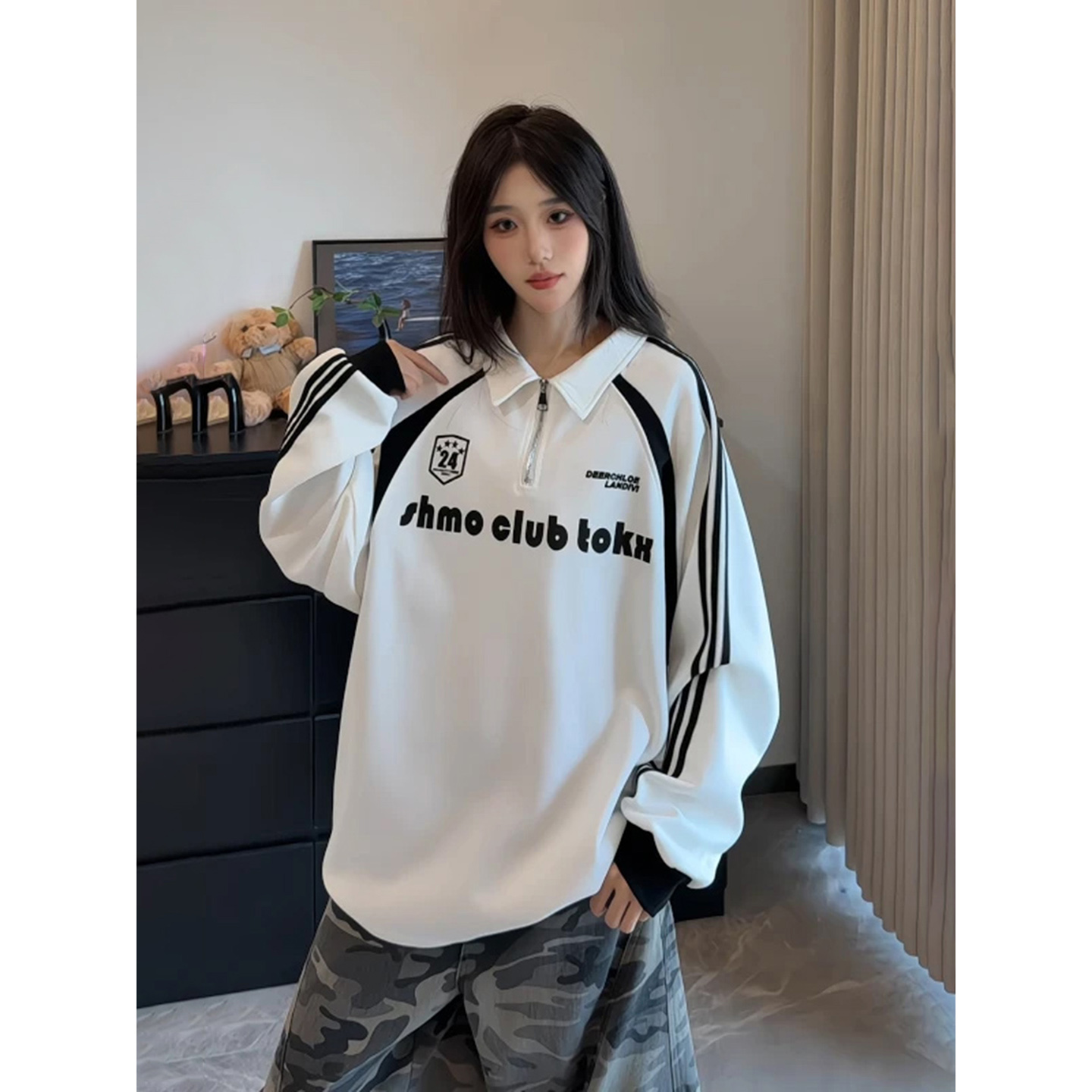 polo衫 美式 正肩长袖 秋季 重磅小众情侣外套 高街半拉链翻领卫衣男款