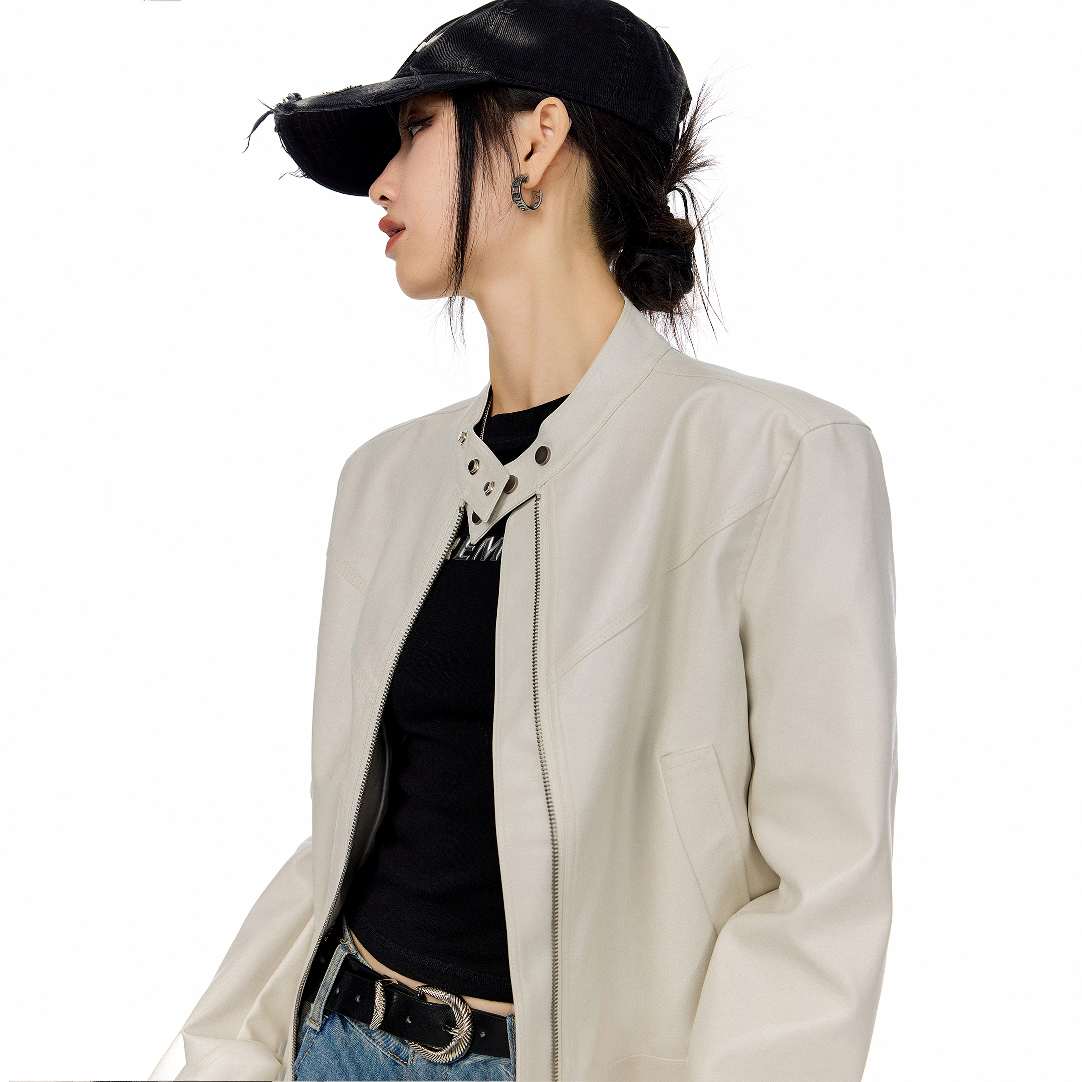 ICH 复古休闲夹克外套 MODE高级质感设计小众立领皮衣外套机车美式