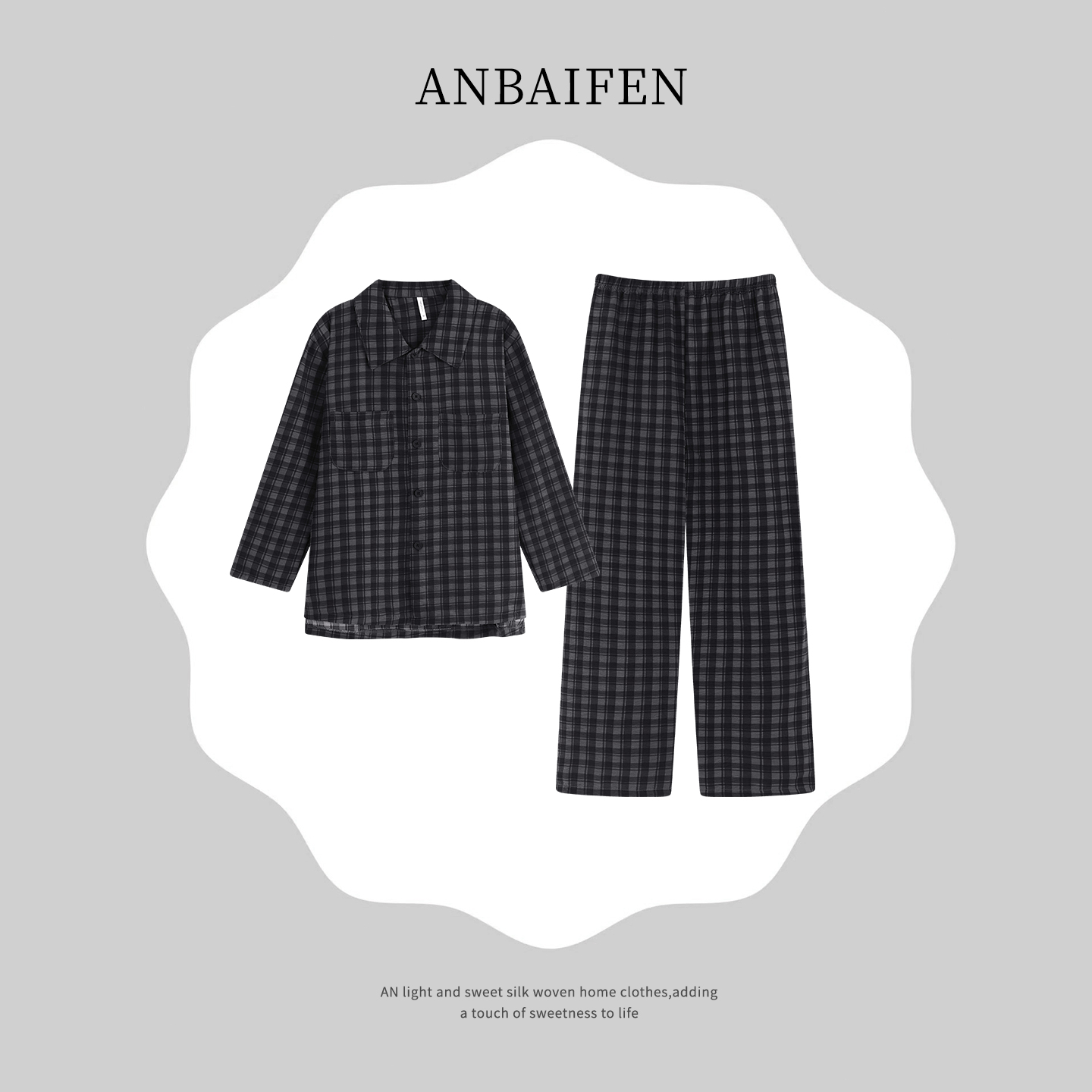 春秋季 睡衣男士 开衫 简约可外穿宽松大码 青少年 长袖 慵懒风套装 长裤